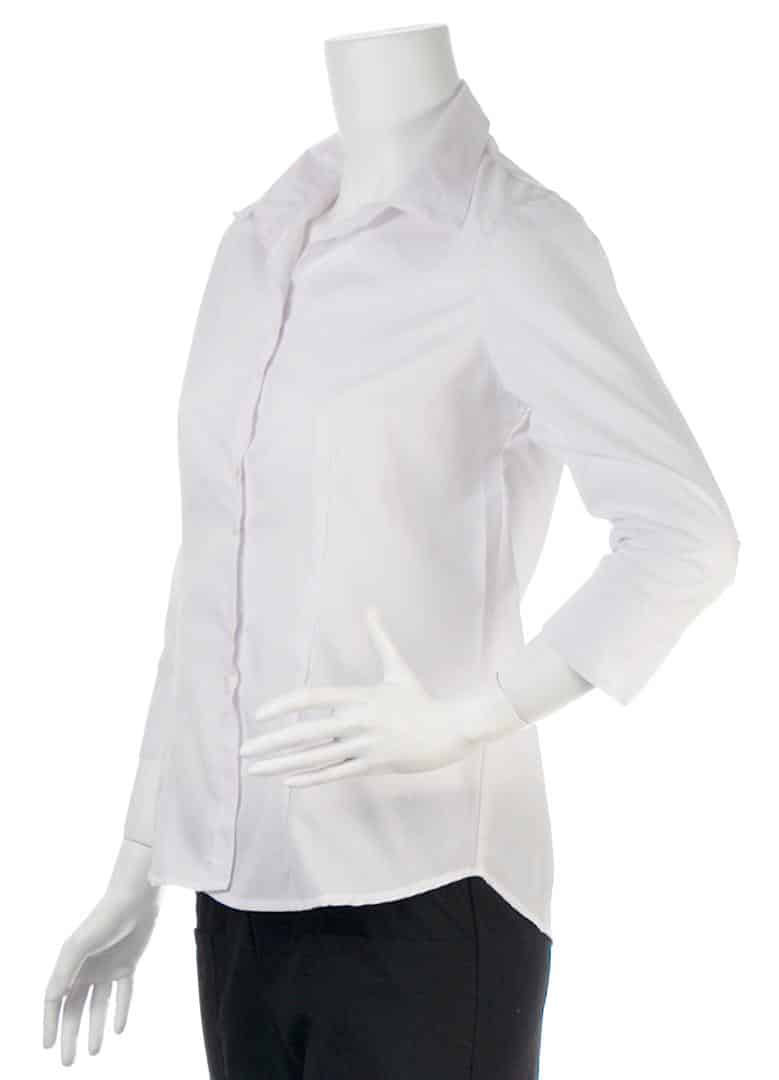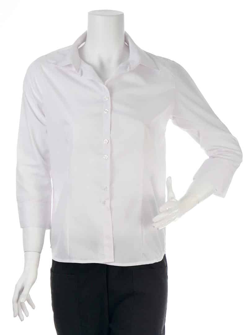 Класическа риза дамска с дълъг ръкав, бяла на цвят. Изработена е от лека материя, смес от памук с полиестер. Изисква елементарна поддръжка, изсъхва бързо след пране и се глади лесно. Закопчаването на ризата е отпред с копчета. Моделът е изчистен и семпъл. Ризата е много подходяща като униформа за рецепционистки в хотели, сервитьорки, или стюардеси. Отлично бихте я съчетали и за лични нуджи с цветен пуловер, или елек. Риза дамска с дълъг ръкав освен бяла, при нас можете да поръчате също в бежово, или жълто. Консултиратей се с нас за възможностите.