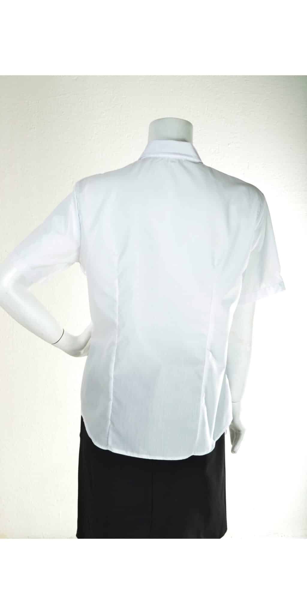 Риза дамска с къс ръкав класик – бяла на цвят. Изработена е по класическа кройка от памук/полиестер. Съставът на плата е подходящ за многократно изпиране, бързо съхнене и лесно гладене. Леката материя позволява свободни движения и достатъчна проветривост. Ризата е с едноредово закопчаване и разполага с един горен джоб. Риза дамска с къс ръкав класик – бяла е изключително подходяща за работно облекло на сервитьори, рецепционистки, персонал в казина и ресторанти. Предлагаме този модел риза и в черен и бежов цвят.