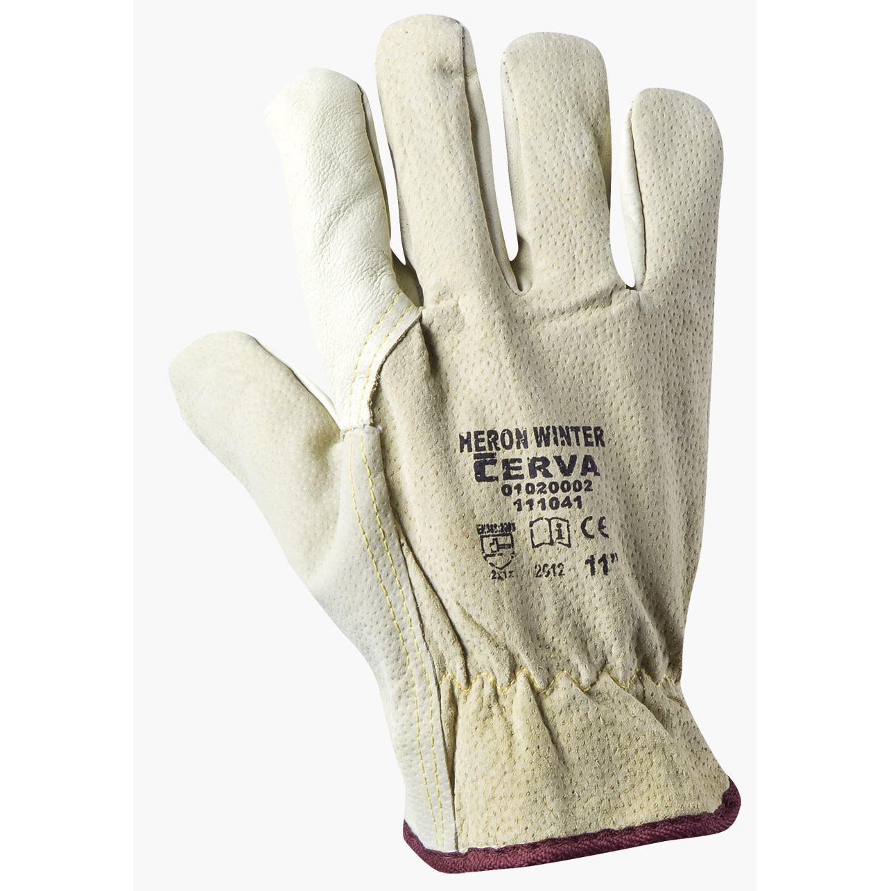 Работни ръкавици модел Херон Винтер от категория студоустойчиви. Студоустойчивите ръкавици са изработени от лицева свинска кожа на дланта и пръстите и са завършени с акрилна подплата.