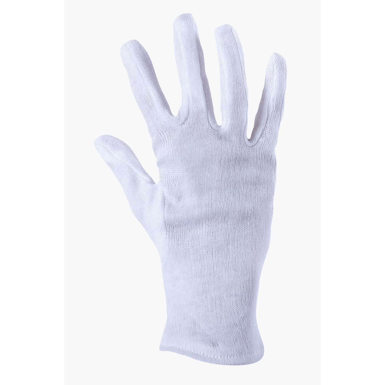 Работни ръкавици изработени от памучно трико, бели на цвят. Моделът няма маншет. Трикото има лека разтегливост.