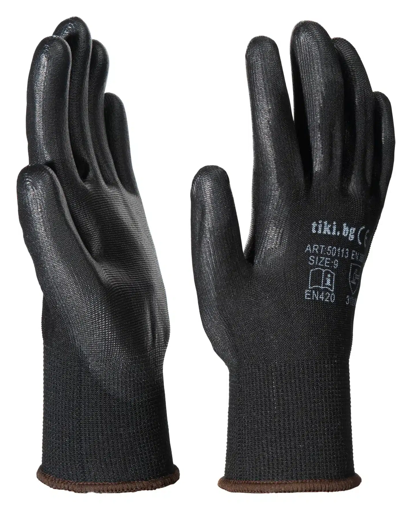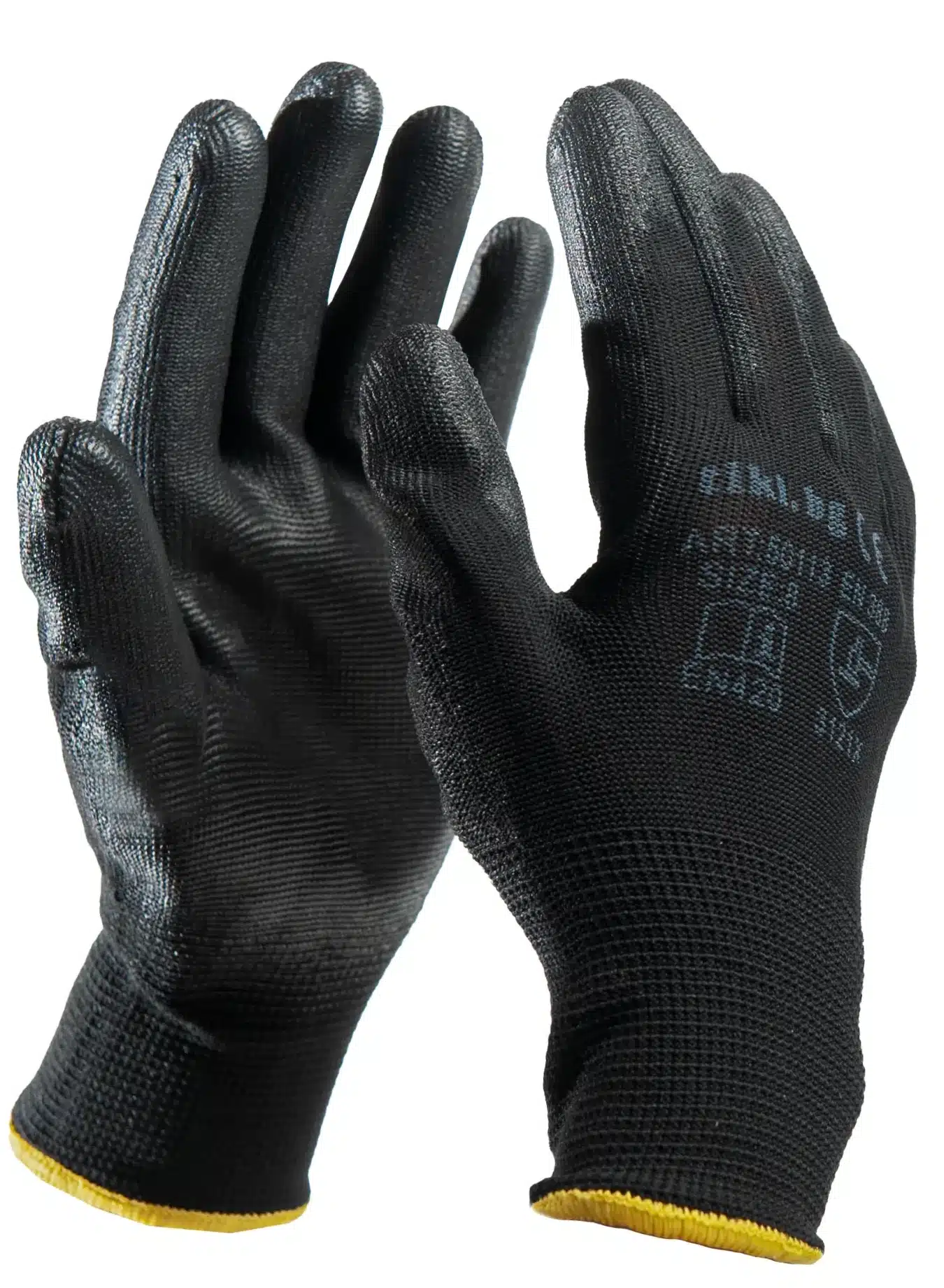 Ръкавици полиуретан – черни, се предлагат в 4 размера от S до XL. Ръкавиците са с 5 пръста, изработени от безшевно полиамидно трико. Имат тънък слой полиуретан в областта на дланта и пръстите. Всеки размер е с различен цвят еластичен маншет.