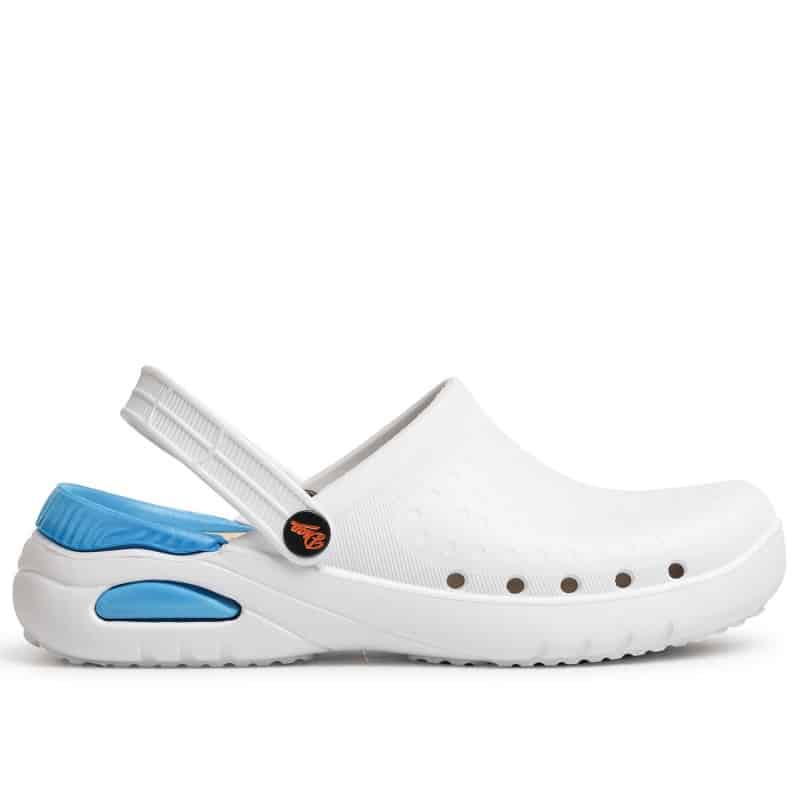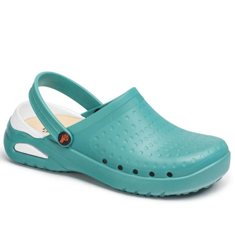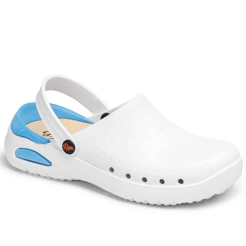 Медицинско санитарно сабо модел Dian Eva бяло на цвят. Изработено е от материал EVA, изключително леко и удобно. Анатомично е и е снабдено с отвори в страни и регулируема каишка. Моделът е без латекс с подвижна PU подложка . Стелката на този модел също е изработена от EVA и има антибактериално покритие, което гарантира удобство и контрол на влагата. Сабото може да се пере в пералня без проблем при температура до 40°C. Моделът е унисекс и се предлага в широк спектър на номерация – от номер 36 до 47. Подходящо е за всички медицински и санитарни работници, особено там, където на работното място има изискване за работни облекла и обувки в бял цвят. Медицинско санитарно сабо модел Dian Eva може да поръчате от нас с предварителна заявка още в следните цветове: лилаво, зелено, розово, черно.