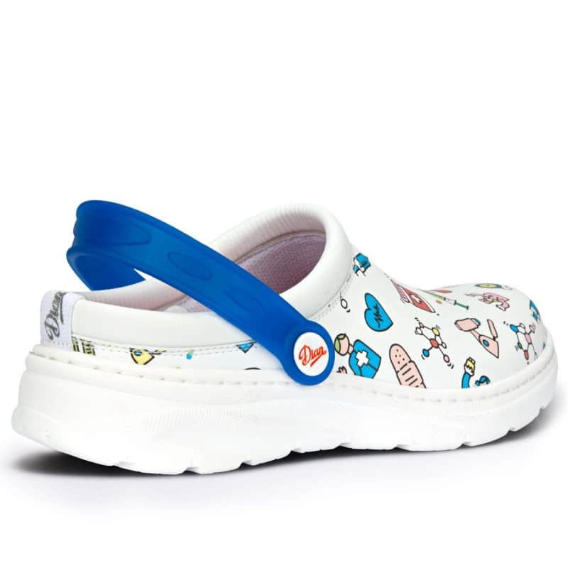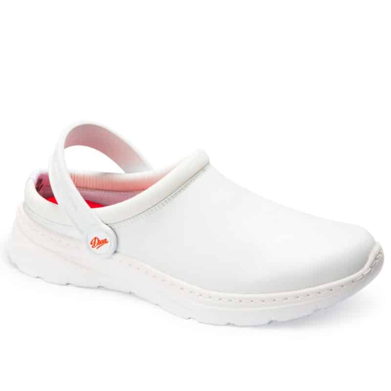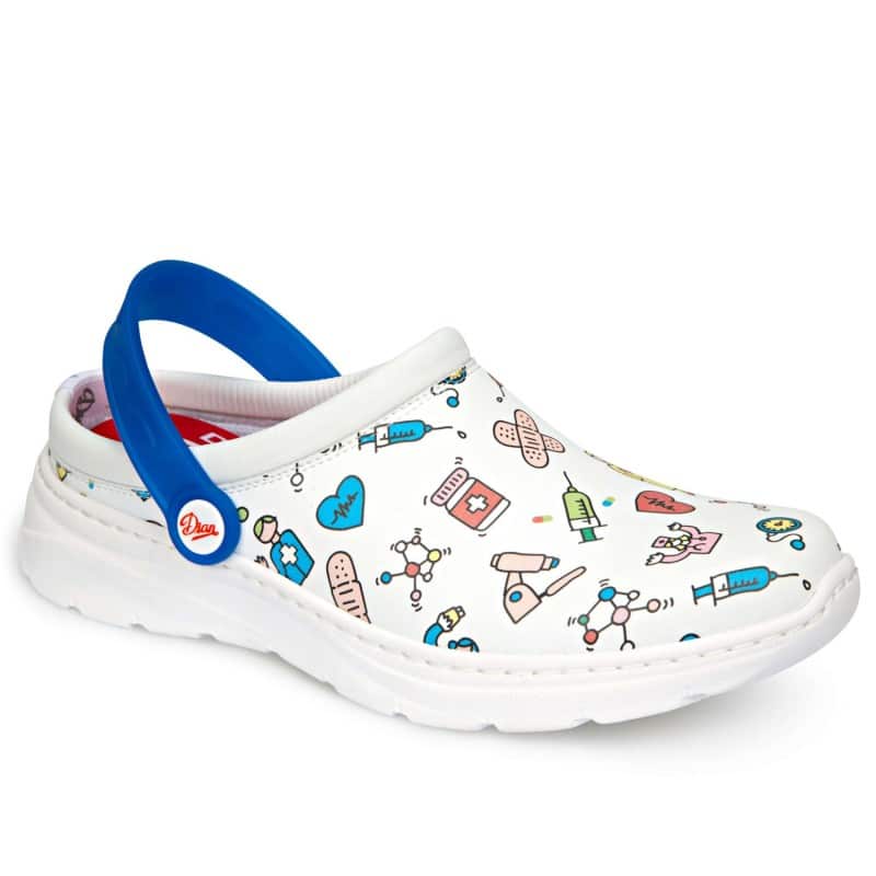 Санитарно унисекс сабо Dian Javea бяло на цвят. Изработено е от дишащ микрофибър и е снабдено с каишка, която може да се регулира. Подплатата на този модел е текстилна, а стелката е подплатена с текстилна материя върху двукомпонентна пяна, която заема формата на крака. Сабото може безпроблемно да се пере в пералня при температура до 40°C. Ходилото му е гъвкаво и много леко, изработено от двукомпонентен полимер и е противохлъзгащо.  Това гарантира добро омекотяване и поглъщане на енергията при ходене. Моделът се предлага в номерация 36 – 47. Санитарно сабо Dian Javea освен бяло на цвят може да поръчате от нас по предварителна заявка също в черен цвят и в два варианта на цветен принт – бял цвят с многоцветен принт и черен цвят с многоцветен принт. Този модел санитарно медицинско сабо е отличен избор за работна обувка на всички медицински и санитарни работници. Подходящо е още за персонал в спа центрове, за рехабилитатории, масажисти, козметички, фризьори и други.