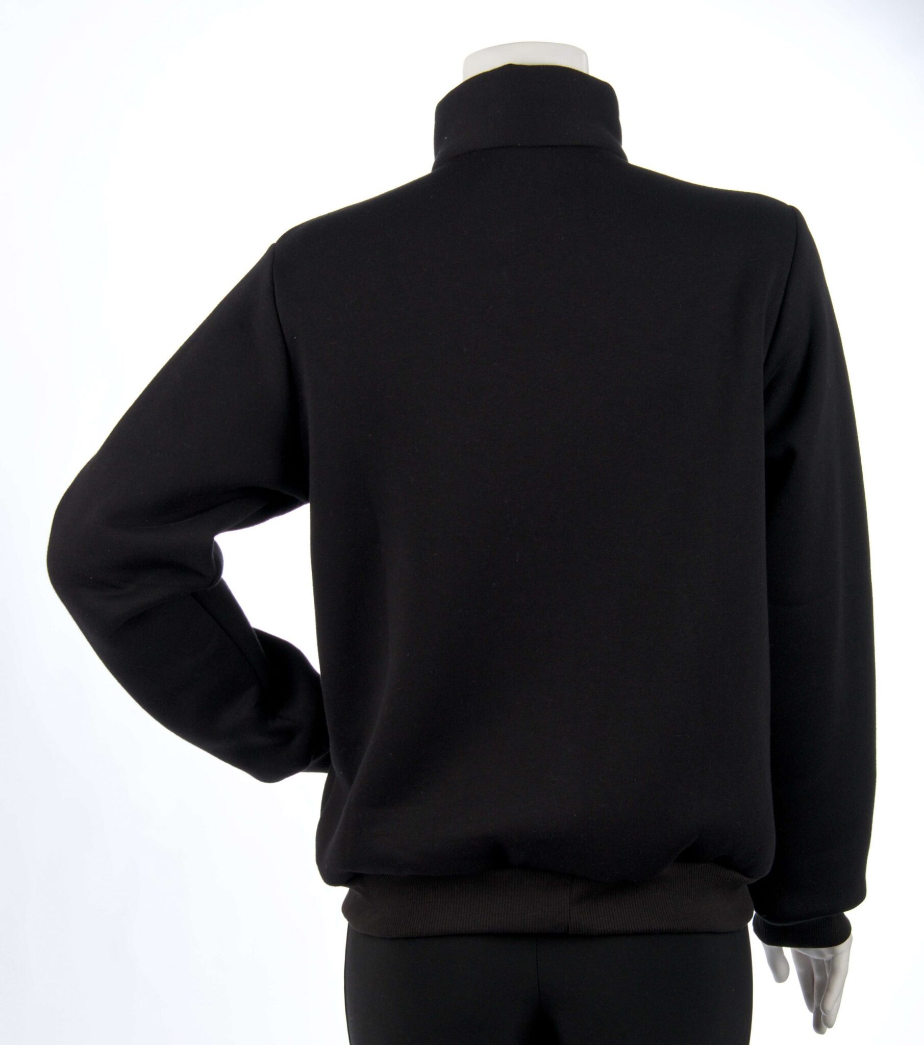 Ватиран унисекс суичер в черен цвят изработен от триконечна вата. Моделът има два джоба отпред и се закопчава с цип по средата. Завършен е с ластици в долната част и при ръкавите. Унисекс права кройка – подходяща едновременно за мъже и за жени. Чудесен избор на облекло за работа в студените дни, както и за лична употреба в ежедневието, на разходка, за спорт, или за комфорт у дома. Предлагаме качествено зимно работно облекло от български производител. Стремим се да покрием нуждите на клиентите ни и да им осигурим изгодно и удобно зимно облекло. От нас може да поръчате ватиран суичер освен в черен цвят, също в тъмносиньо и в сив меланж.