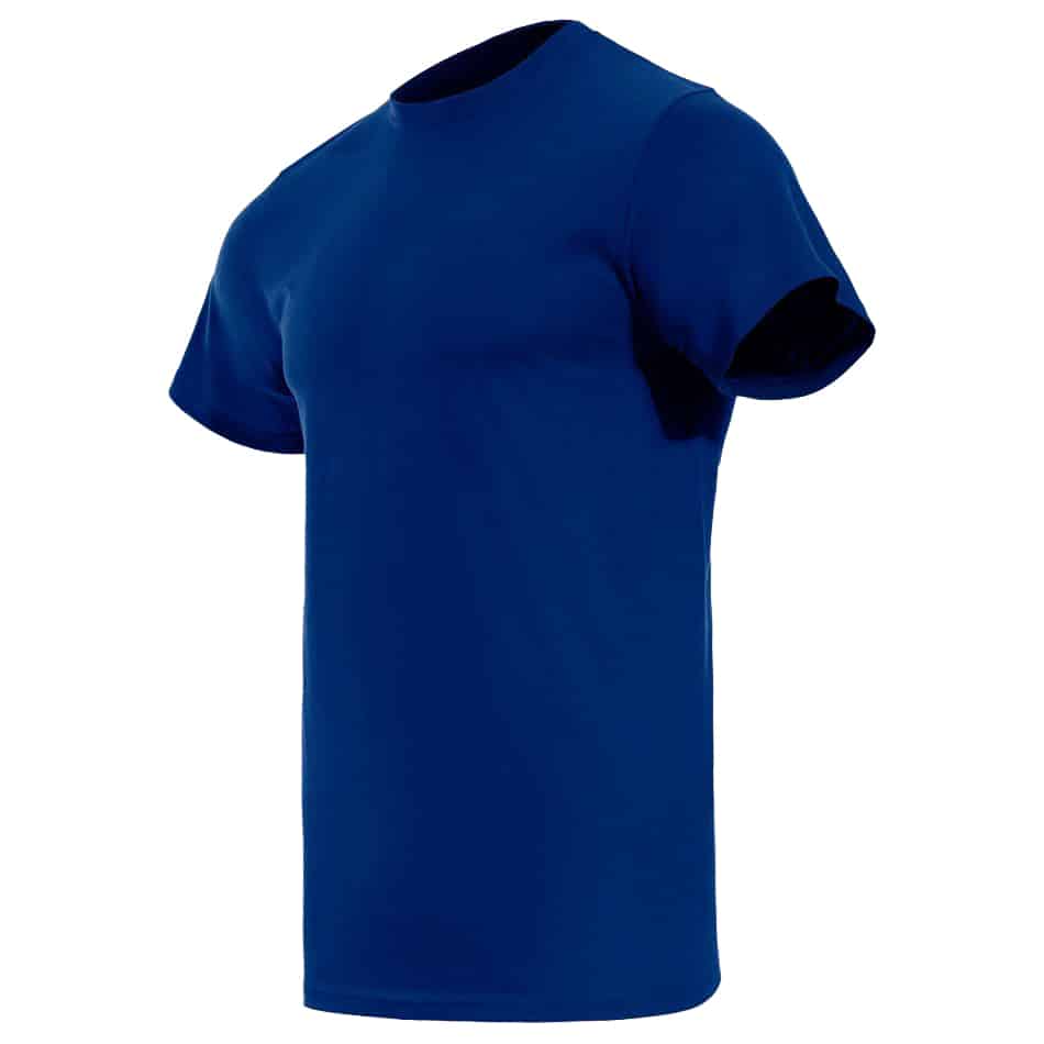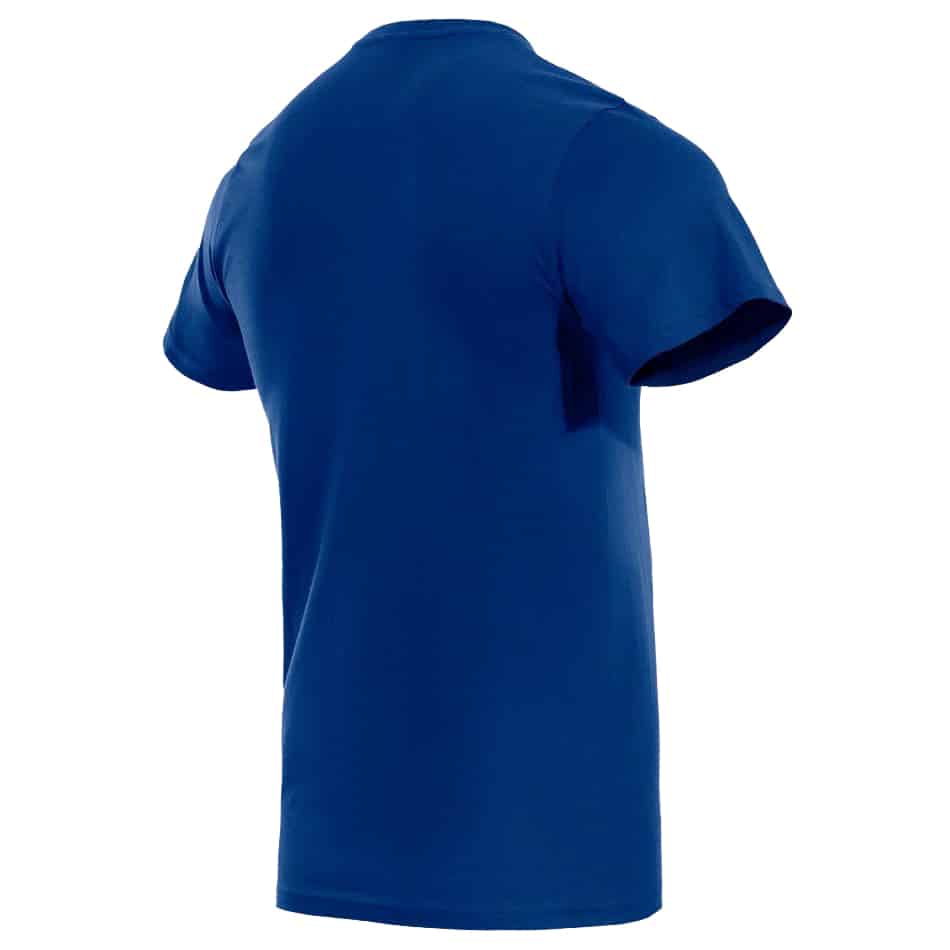 Тениска Наос с къс ръкав – синя на цвят с права кройка и къс ръкав. Моделът е изработен с обло деколте, широко 1,5 см. Има добавени шевове за подсилване от вътрешната страна на деколтето. Материята е изключително лека и мека. Съставът на тениската е 100% памук. Тениска Наос с къс ръкав – синя е изключително лесна за поддръжка. Подходяща е за част от работната униформа през летния сезон за всеки тип работна среда –  заведения за бързо хранене, помощници в кухни, сервитьори.