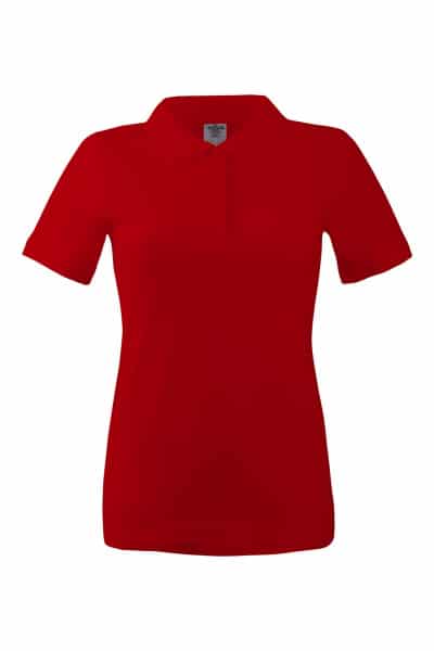 Памучна тениска с яка, дамска, червена на цвят. Моделът има удобна леко вталена кройка. Материята е много мека на допир. Тениската е подходяща както за работно облекло, така и за лична употреба в ежедневието.
