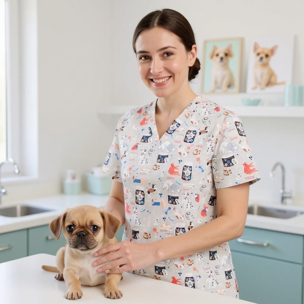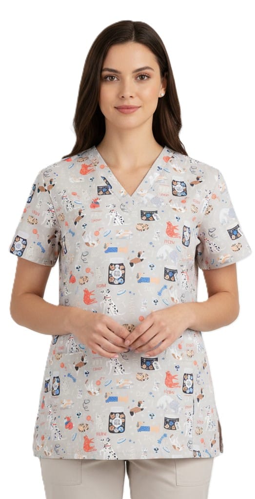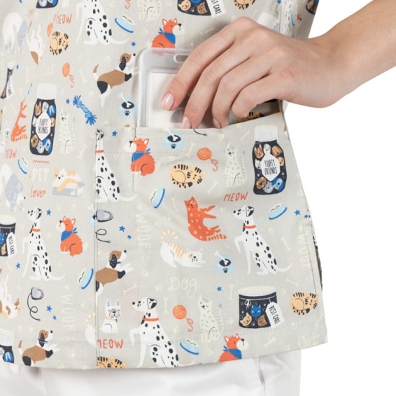 Комбинирайте своята туника с принт vet с втален медицински панталон в бял цвят. Разгледайте и останалите ни предложения за медицинско облекло в нашият сайт или във физическите ни магазини.