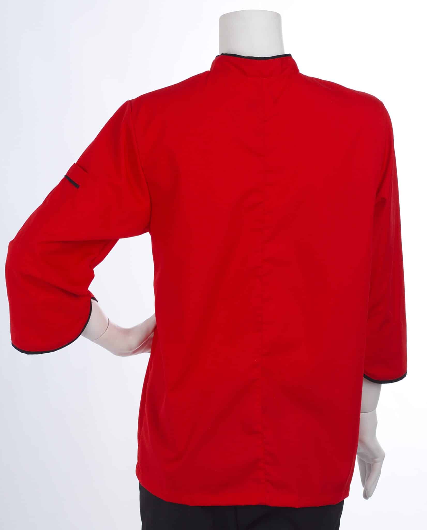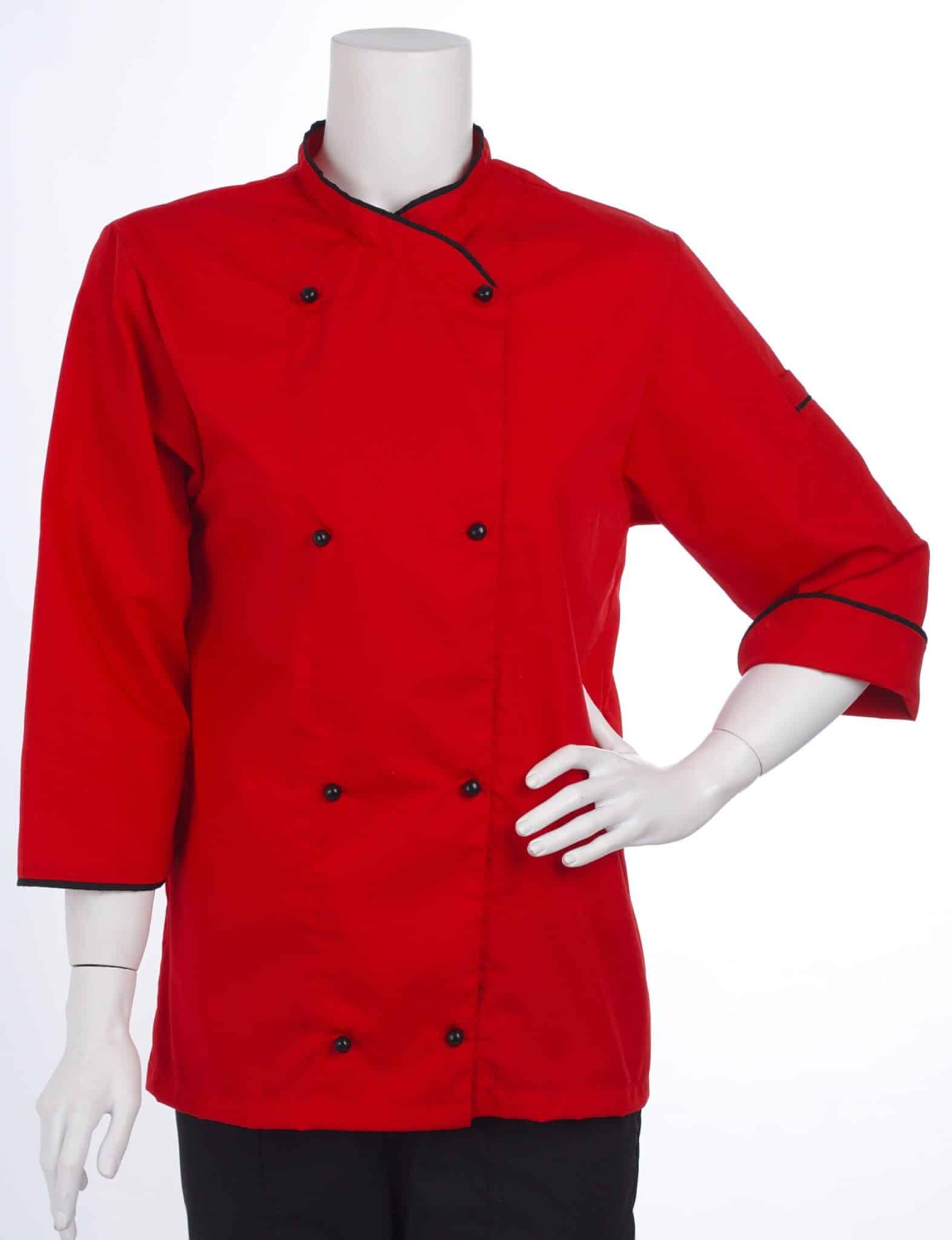 Асиметрична туника за готвач с копчета тип пешка, червена на цвят. Оригинален и много атрактивен модел. Кройката е права, универсална и е подходяща както за мъже, така и за жени. Има малко джобче на левия ръкав, в което можете да съхранявате химикал или други вещи от първа необходимост. Туниката придава изискана и изключително представителна визия на всеки готвач. За завършена готварска униформа, можете да я комбинирате с шапка пуканка или пилотка в черен, или червен цвят. Туника за готвач с копчета тип пешка освен червена, може да бъде изработена също в черен и бял цвят, а също и в друг цвят по индивидуална заявка. Цветът на копчетата пешка може да бъде по ваш избор – червен, бял, или черен. Ако желате, имате възможност да си поръчате отделно копчета тип пешка. Бихме могли да изработим готварски туники и в различни от показаните в сайта цветове, като цената ще се промени. Потърсете ни за справка.