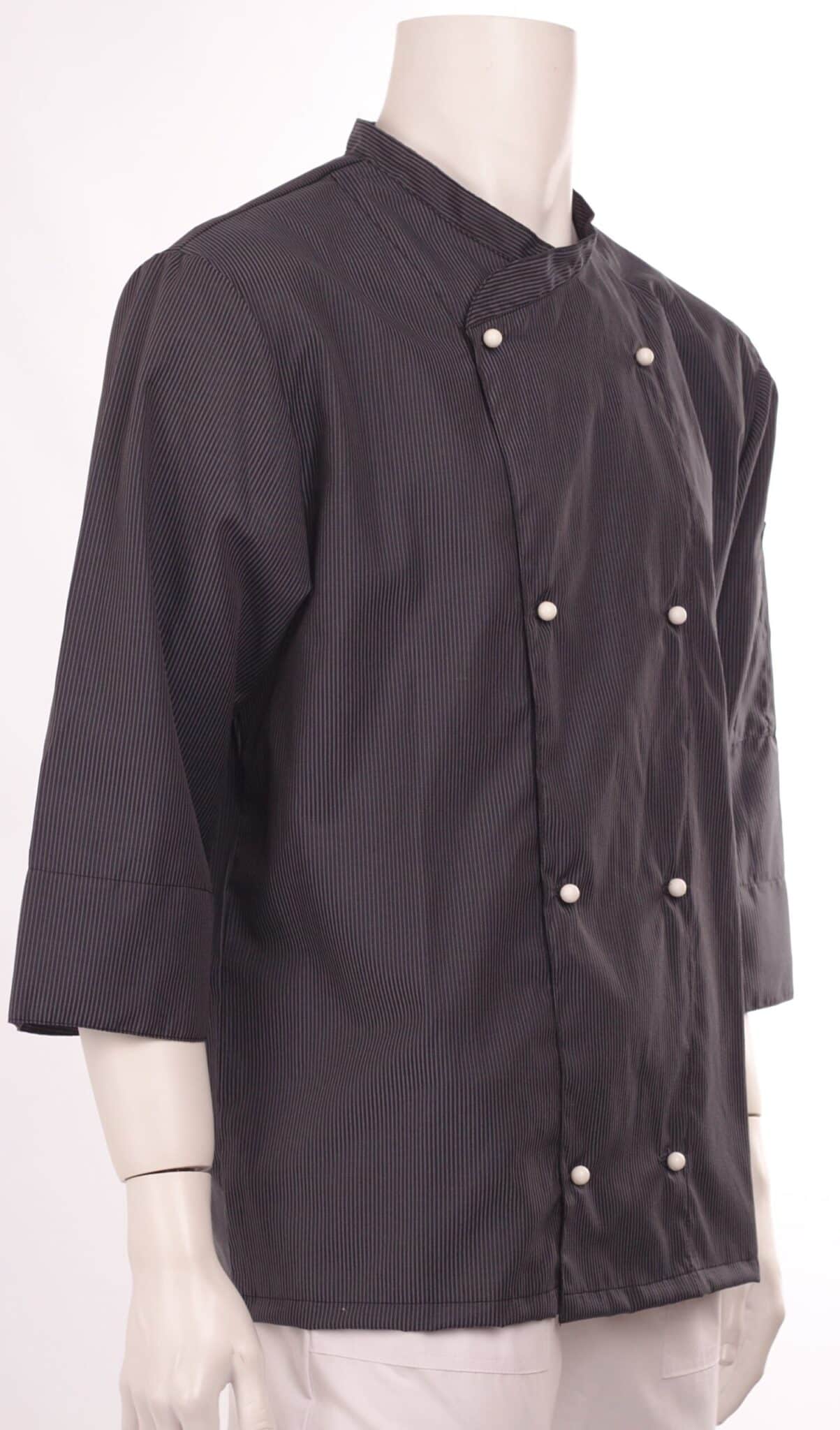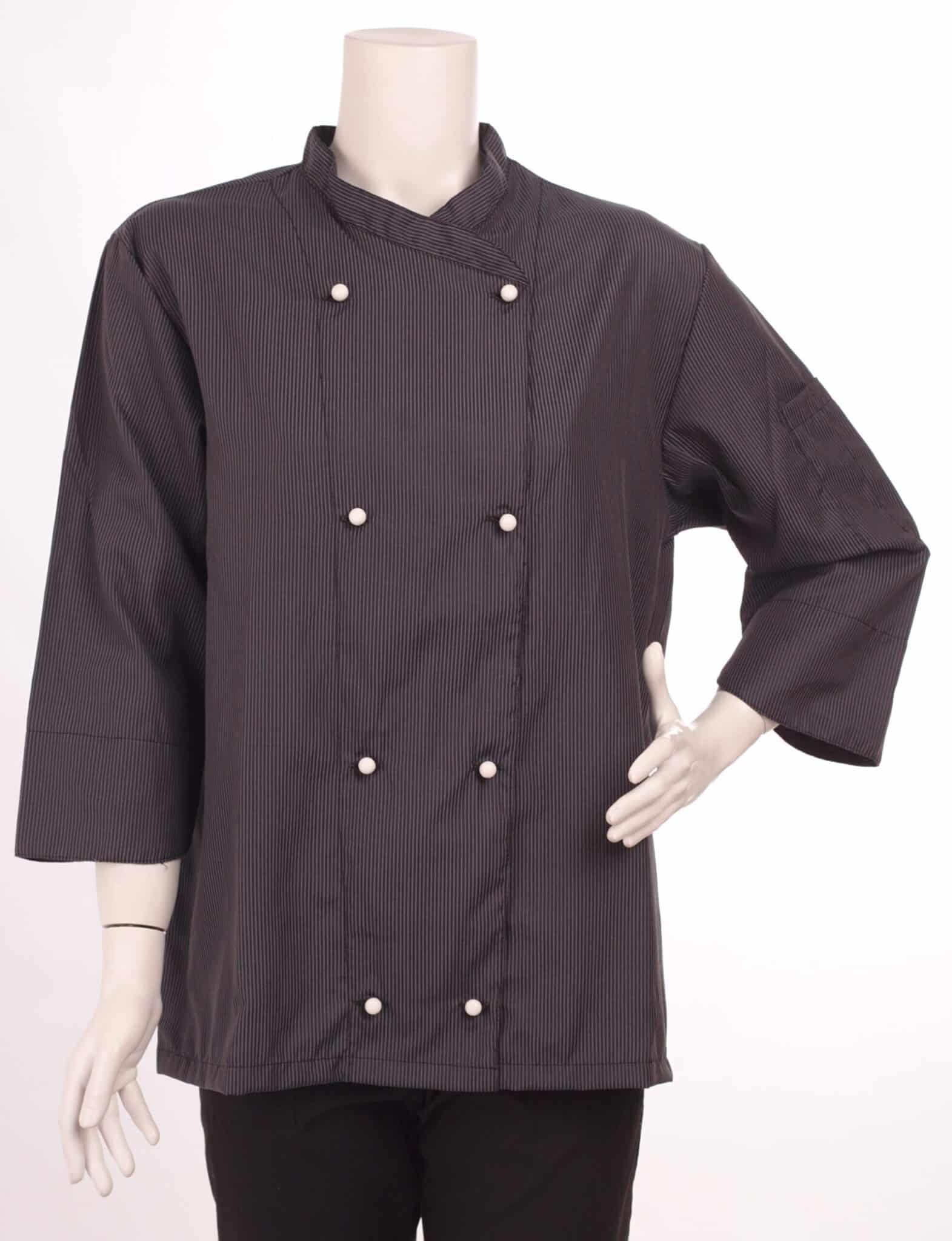 Атрактивна туника за готвач в сиво райе. Платът, от който е изработена туниката, е много мек и същевременно с лек грамаж. Осигурява комфорт по време на работния ден, а също и добра проветривост. Материята също така е лесна за поддръжка и не е претенциозна. Атрактивният дизайн прави туниката силно предпочитана от луксозни ресторанти като работно облекло за персонала. Можете да я комбинирате с панталон унисекс в черен, или в бял цвят. Туника за готвач – шеф при нас ще намерите в разнообразни размери, според нуждите ви. Туниката се предлага с бели копчета, но по избор на клиента може да бъде съчетана с черни, или червени. Разгледайте всички наши предложения за готварски туники. Ако желаете, можете да си поръчате отделно само копчета тип пешка.