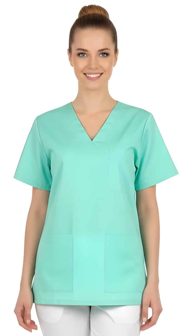 Медицинска туника унисекс в цвят резеда. Моделът е изработен с права свободна кройка и заострено деколте. Има общо три предни джоба. Еднакво подходящ е за мъже и за жени. Отлично предложение за работна униформа на служители в медицински заведение, санитари, за персонал в детски заведения, козметични салони и много други. За завършена работна визия може да съчетаете туника унисекс в цвят резеда с медицински панталон в резеда, както и с медицинско сабо. При нас ще намерите медицински работни туники в голямо цветово разнообразие.
