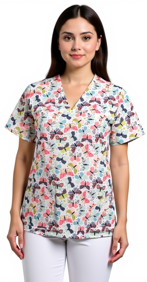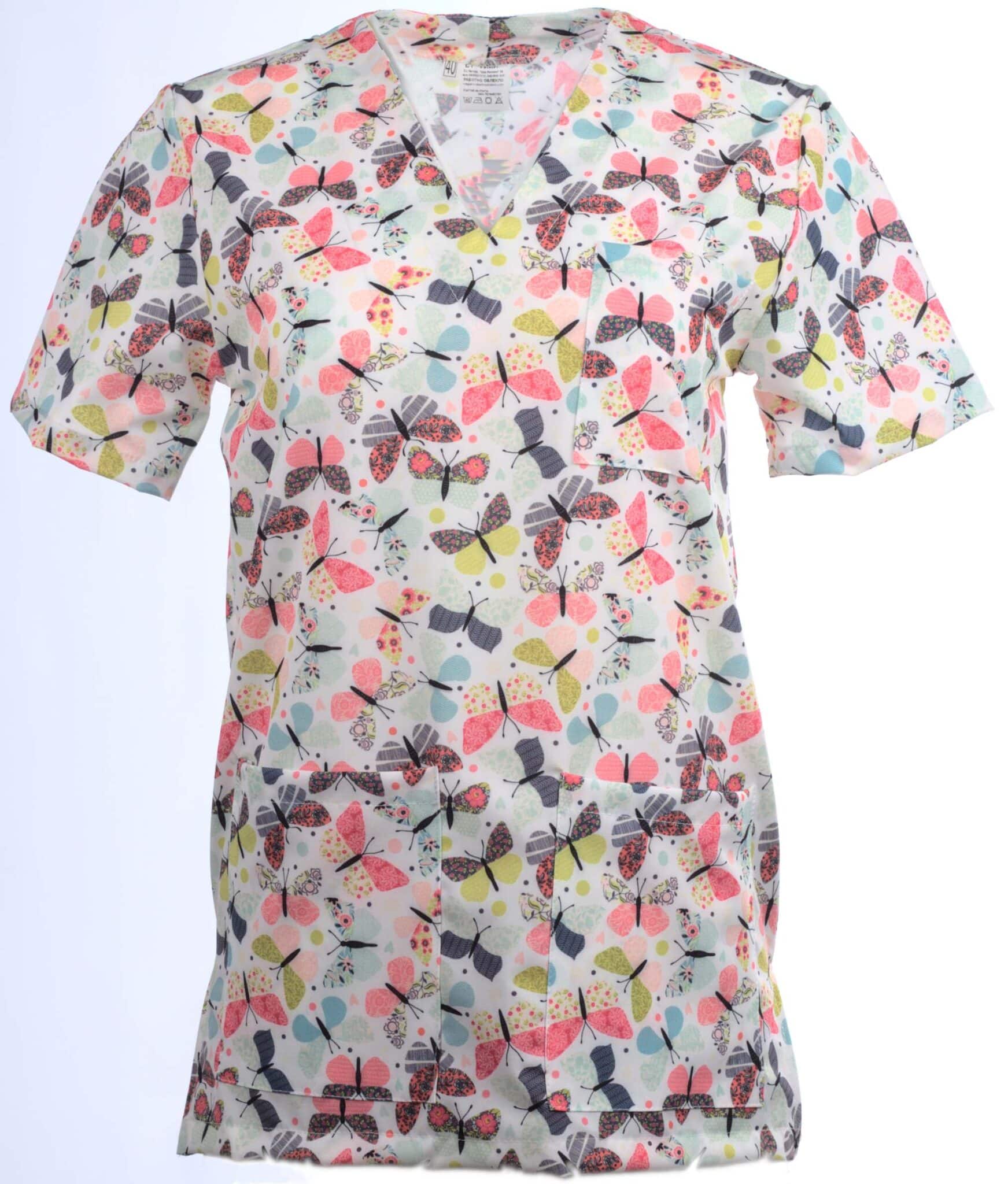 Медицинска туника унисекс, с щампа Бътерфлай в свежа лятна щампа. Много симпатична визия и подходящо облекло за всеки медицински и санитарен работник. Също и за козметици, фризьори, или рехабилитатори. Правата свободна кройка прави модела много удобен за многочасова работа, а материята гарантира лесна поддръжка. Можете да съчетаете туника унисекс Бътерфлай с панталон унисекс по избор и с подходящ модел сабо. Стараем се да осигурим на своите клиенти качествено медицинско облекло на много изгодни цени. За нас е важен вашият комфорт по време на работното дежурство.