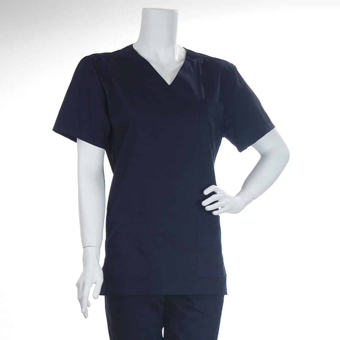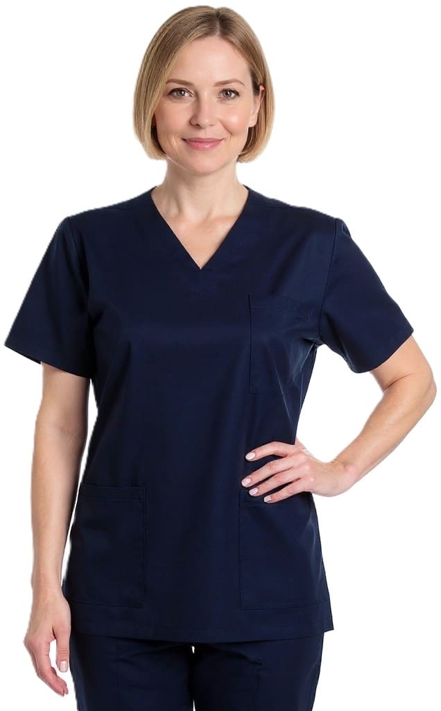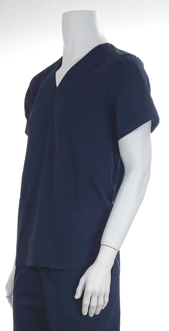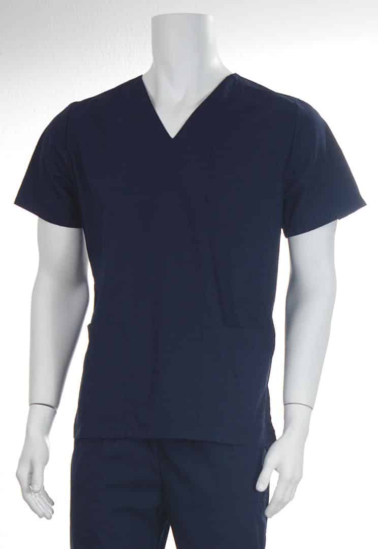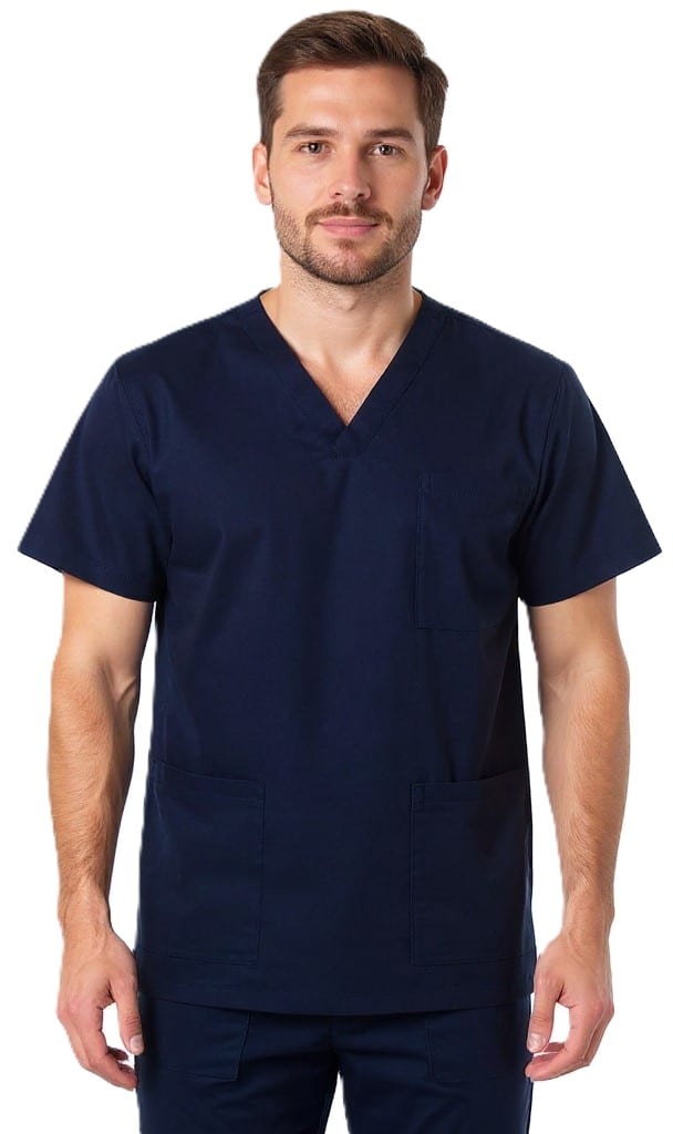 Медицинска туника тъмносиня на цвят с права унисекс кройка. Моделът е с къс ръкав и остро деколте. Туниката има 3 функционални джоба за съхранение на инструменти и аксесоари. Единият джоб е горе в ляво, а другите два са разположени странично в долната част на туниката. Подходяща е както за мъже така и за жени. Туника унисекс тъмносиня е предпочитана работна униформа от медицински и санитарни работници, персонал в детски заведения, козметични центрове и други.