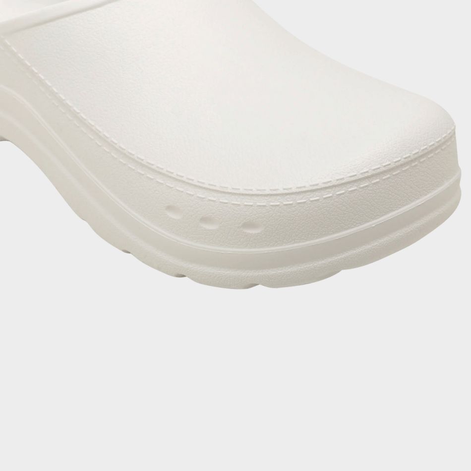Поръчайте това леко и удобно унисекс сабо Como – бяло, за да си осигурите комфорт и модерна работна визия. Сабото е изработено от материал EVA. Изкючително подходящо за медицински персонал защото е хипоалeргенно, устойчиво на гъбички и бактерии. Подходящо е също така и за свободното време, за градината, както и за кухненски работници.