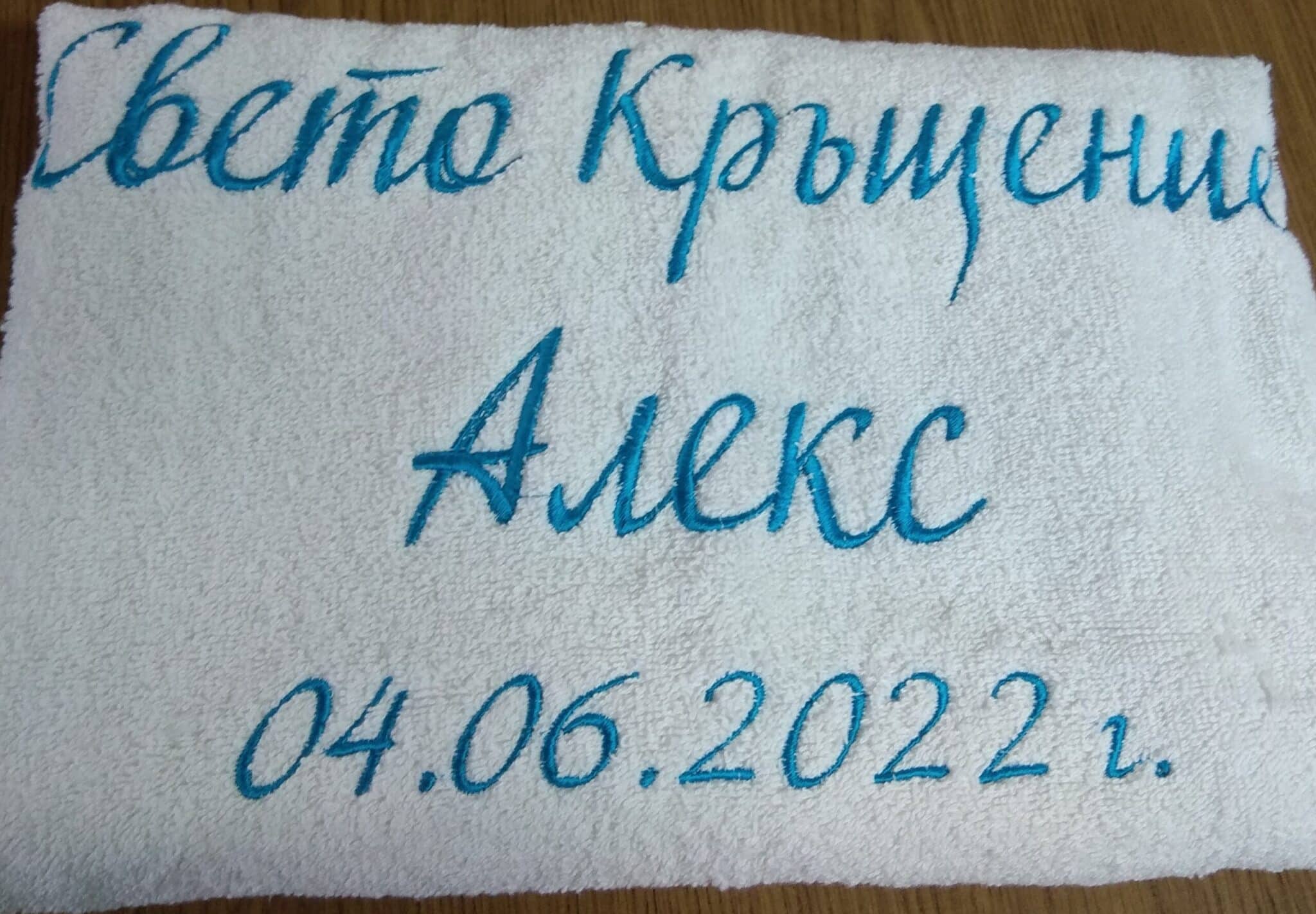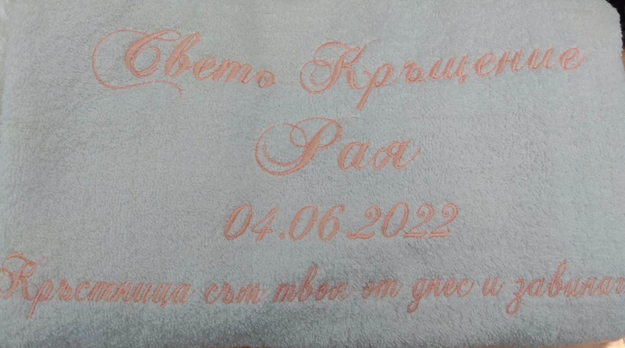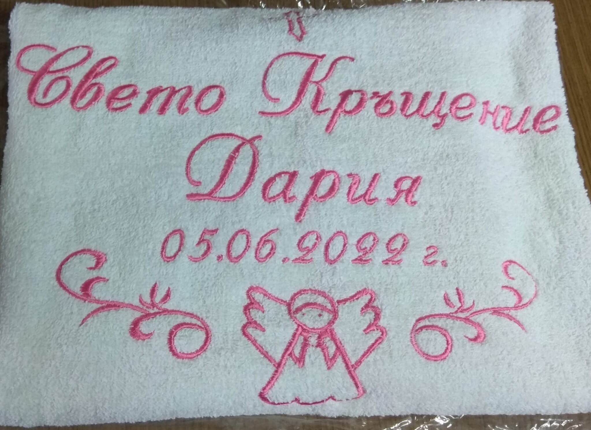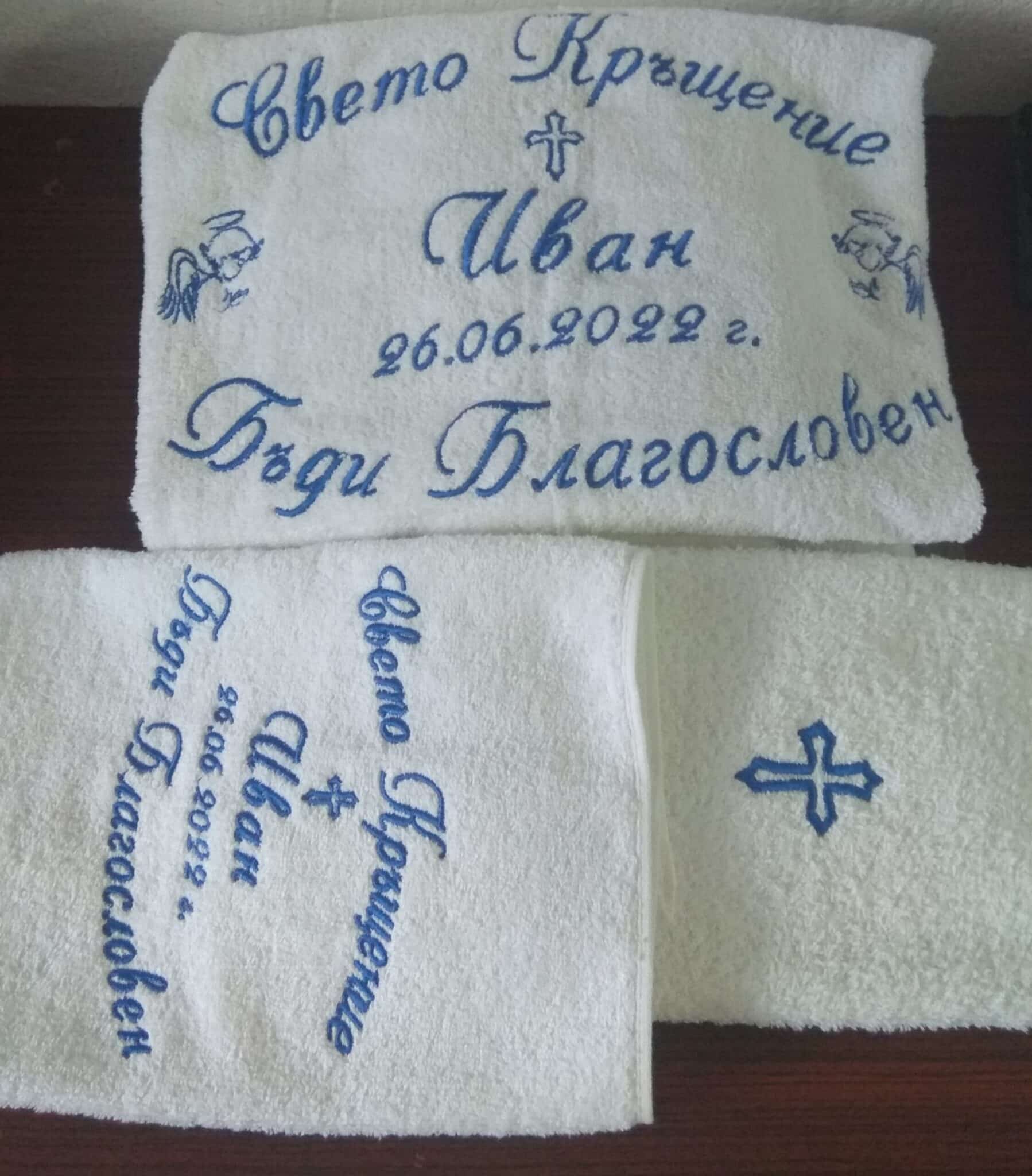 Цветовите комбинации са различни в зависимост от вашите предпочитания. Хавлиена кърпа за кръщене е подходящ за подарък за църквата, кръстник, както и за гостите. Най-разпространен е размера 70 х 140 см.