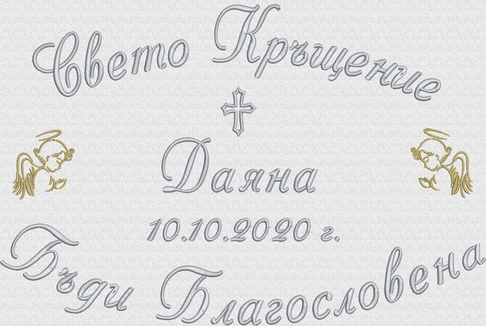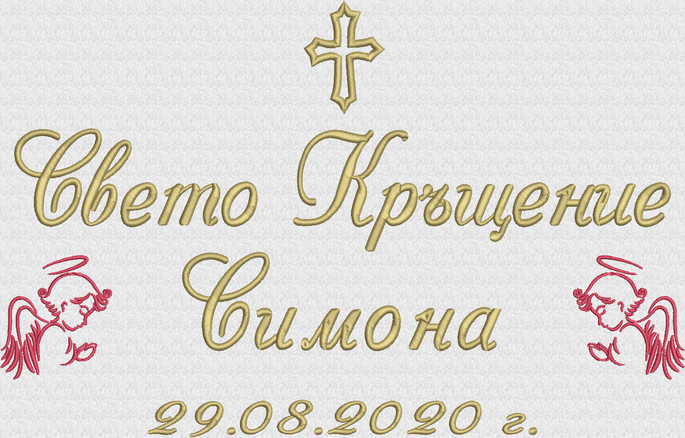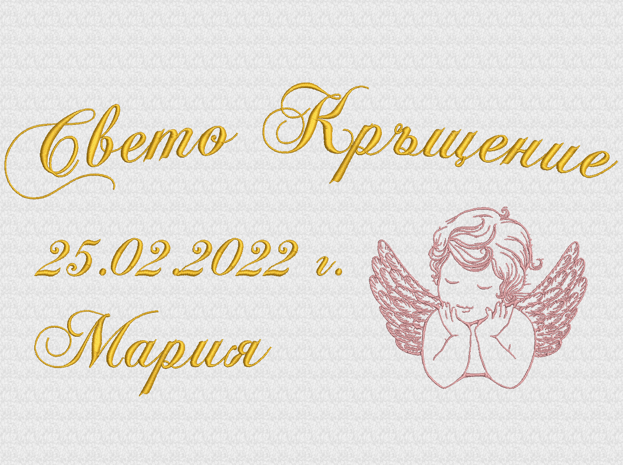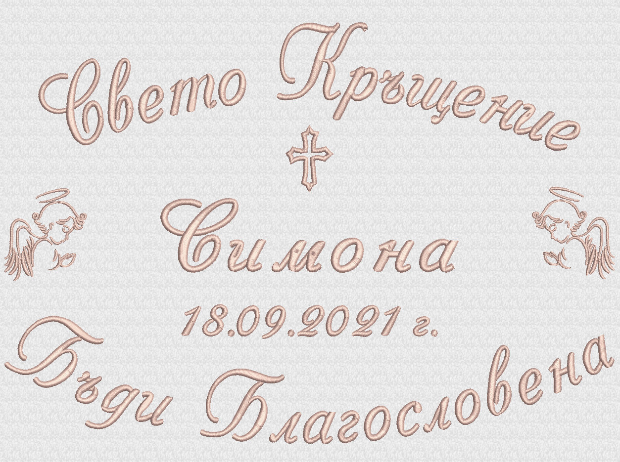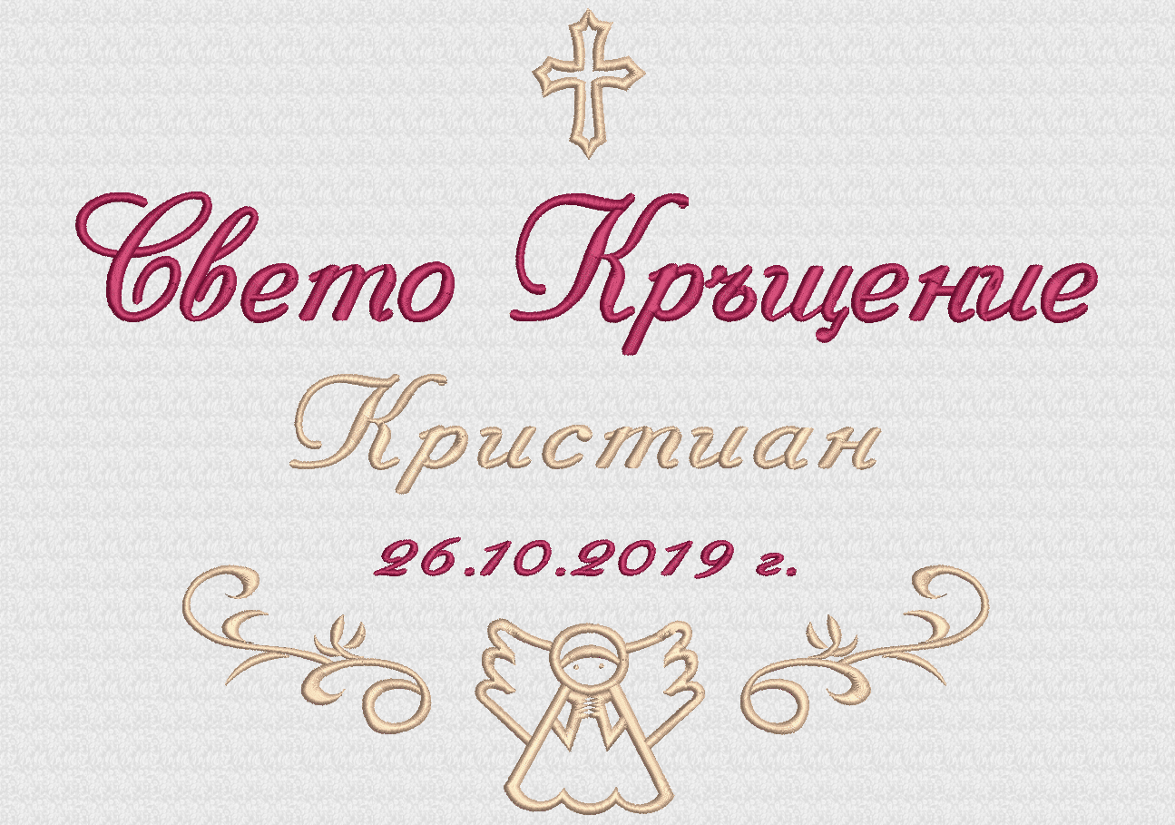 - надпис Свето Кръщение, две ангелчета, име на детето, дата