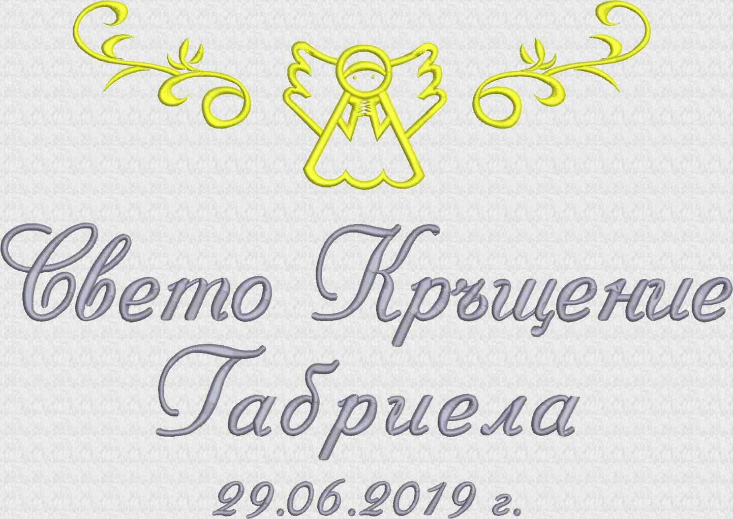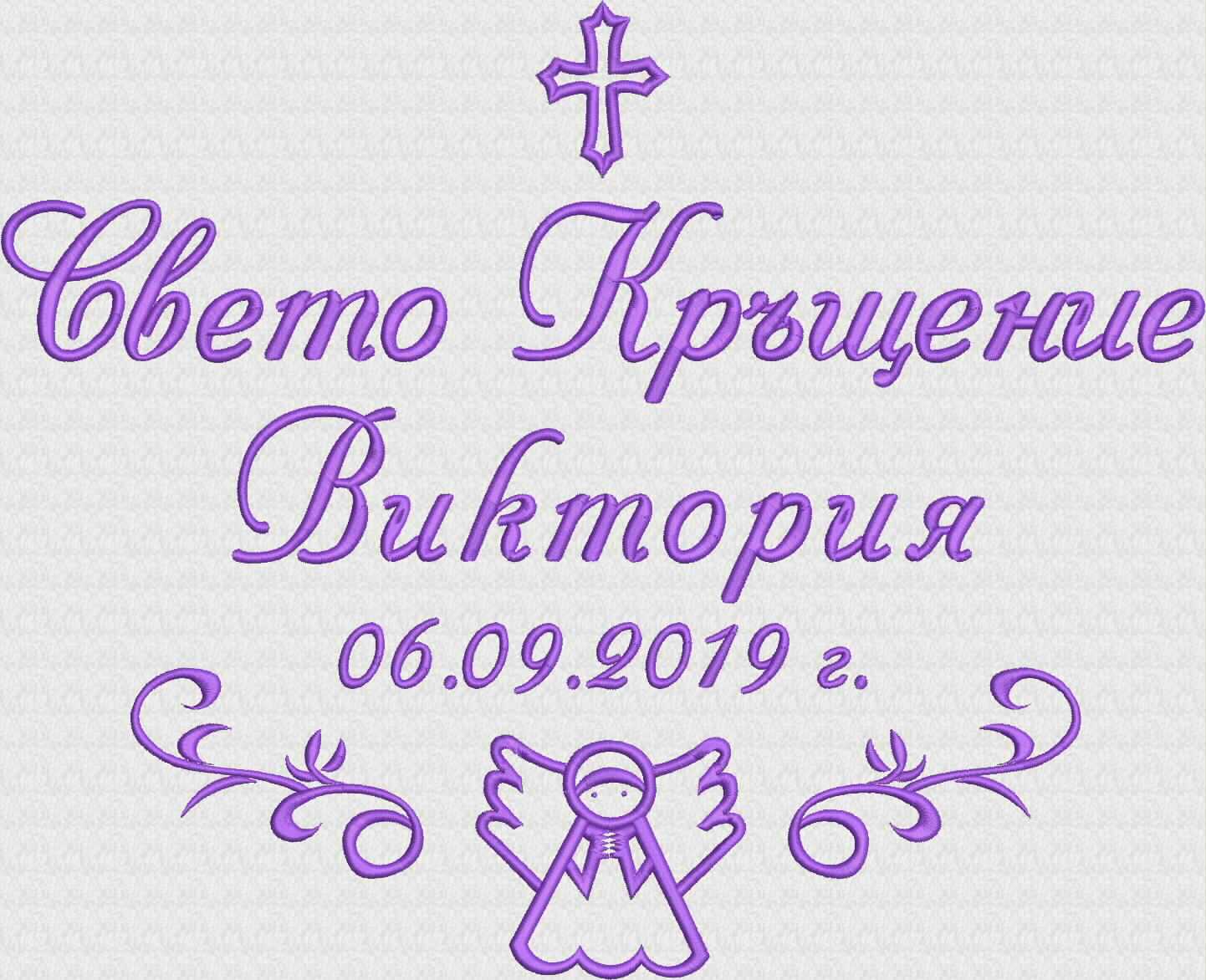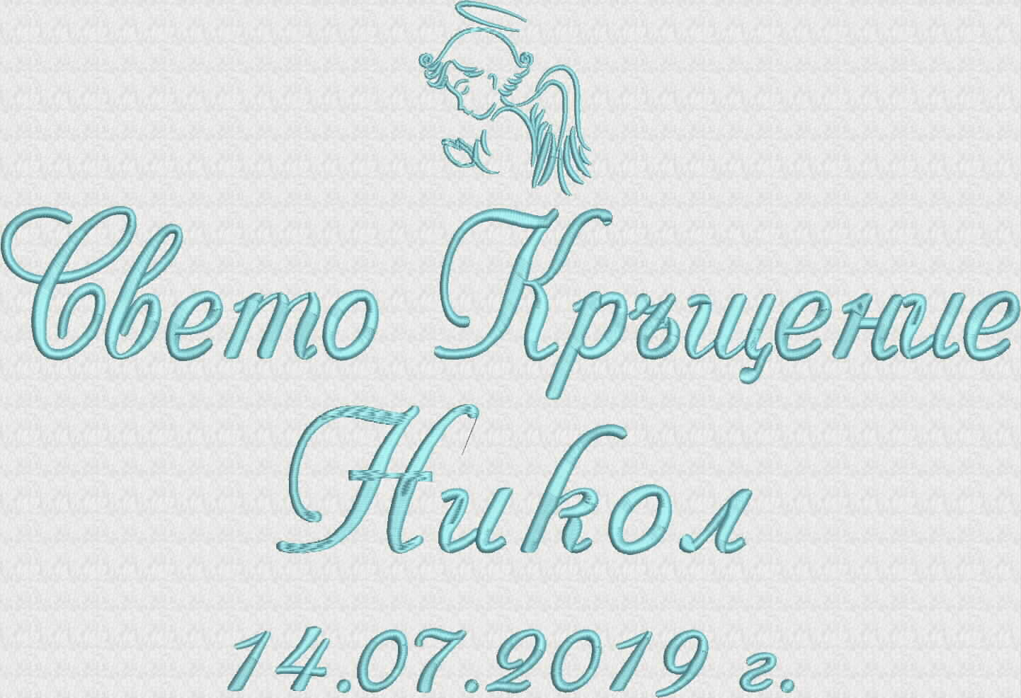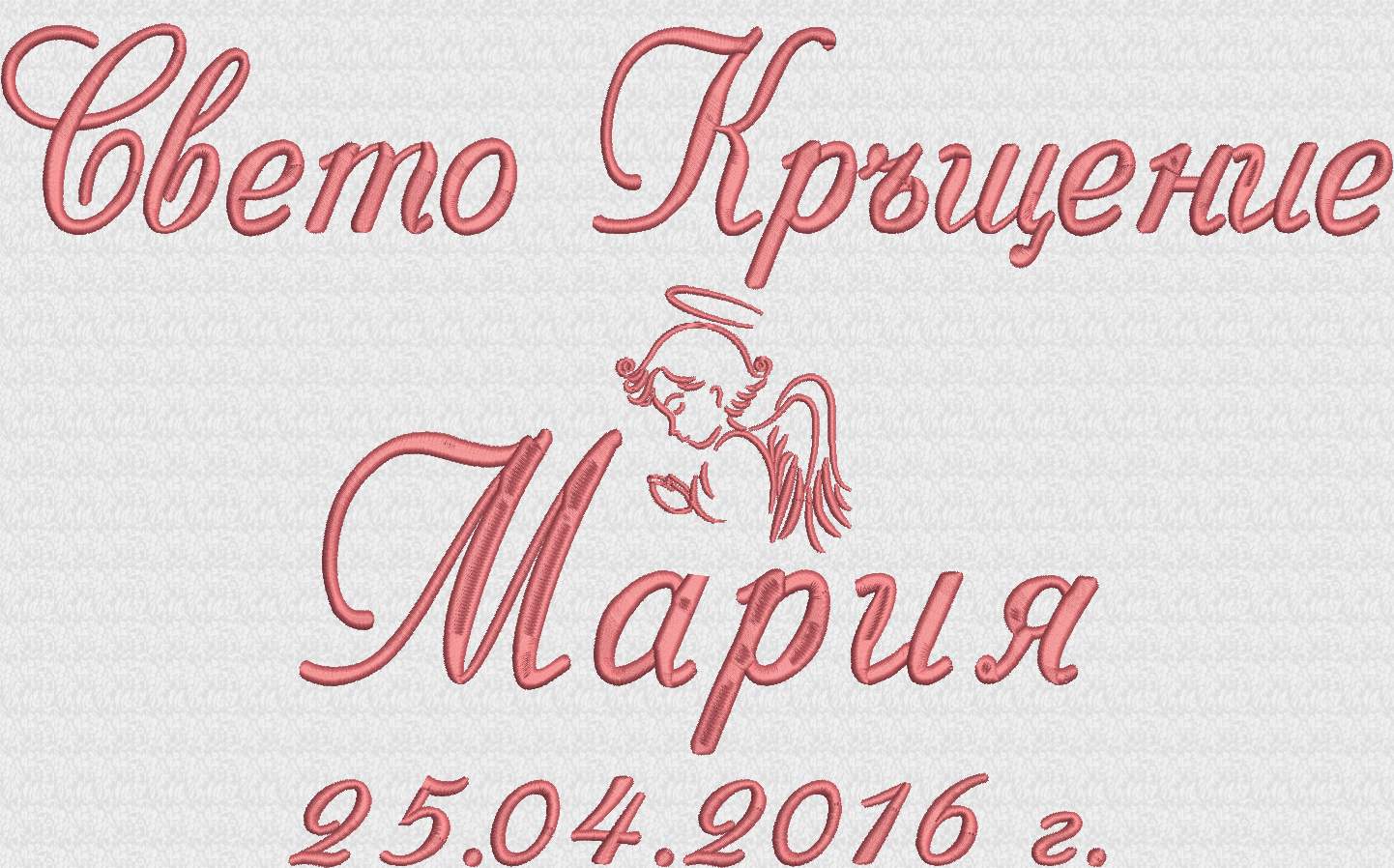 - надпис Свето Кръщение, две ангелчета, име на детето, дата