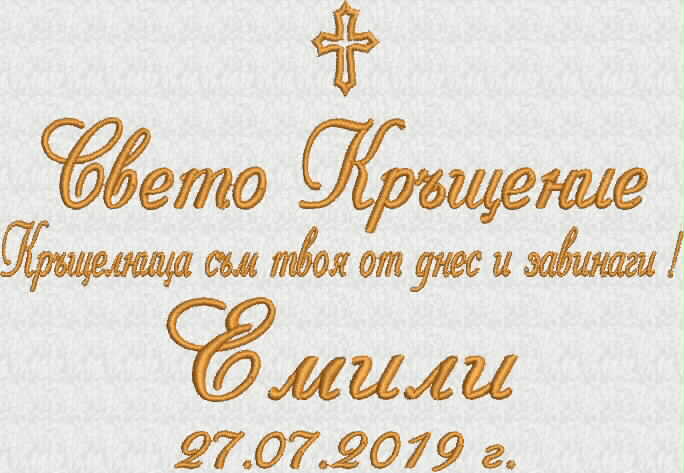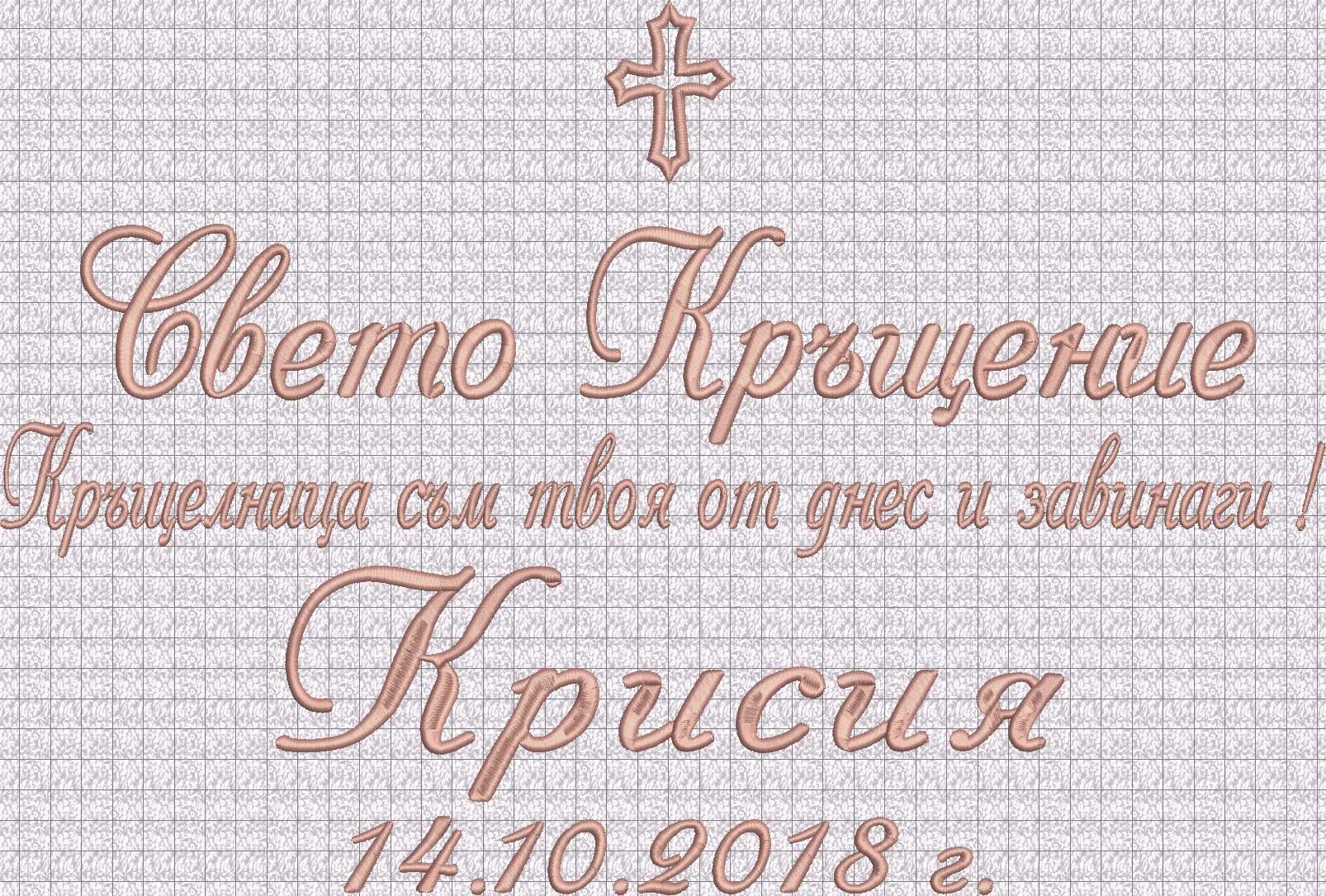 - кръстче, надпис Свето Кръщение, име на детето, дата