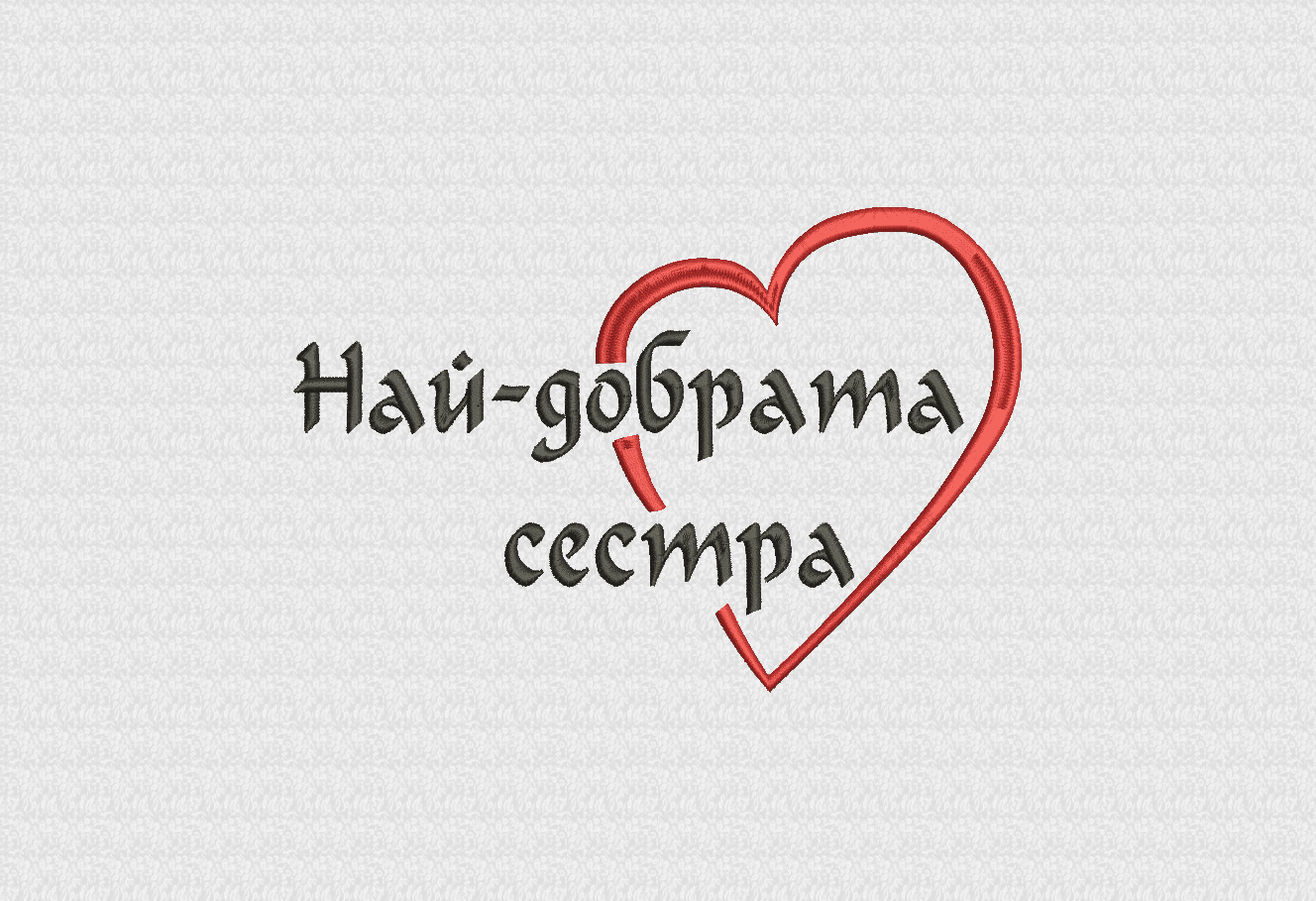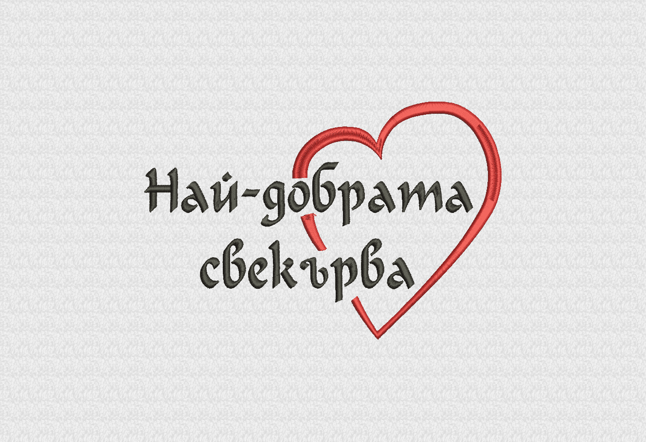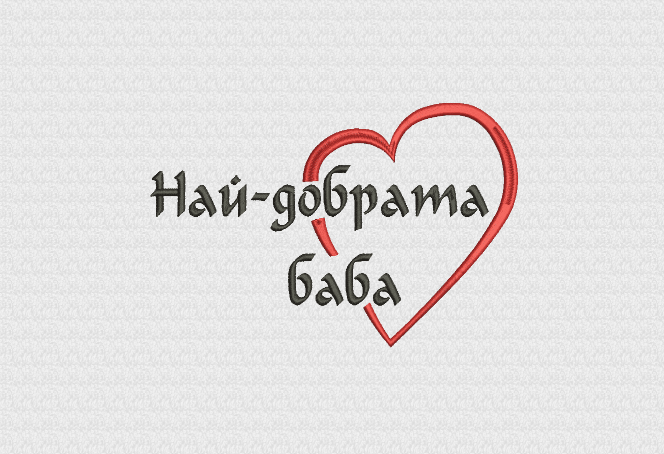 Хавлиена кърпа от 100% памук с плътност 450 г/м2 в бял цвят, с размер 50/90 см с поставена компютърна бродерия със сърце и надпис Най-добрата … или Най-добрият…, където по избор на клиента допълваме майка, баба, свекърва, сестра, госпожа, татко или дядо според това за кого е предназначена кърпата. Хавлиена кърпа Най-добрата … е чудесен подарък, който може да поднесете дори и без повод на любимите си близки. При нас можете да поръчате и дамска бяла тениска в желан размер, с надпис Най-добрата …или Най-добрият… , поставен чрез дигитален печат. Предлагаме също така подаръчни комплекти в няколко варианта.