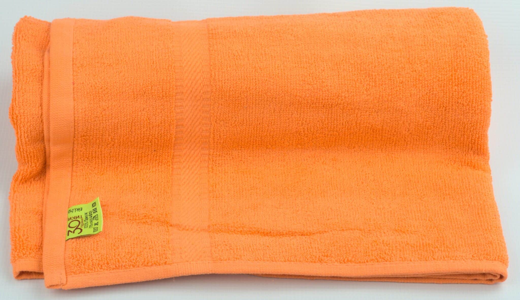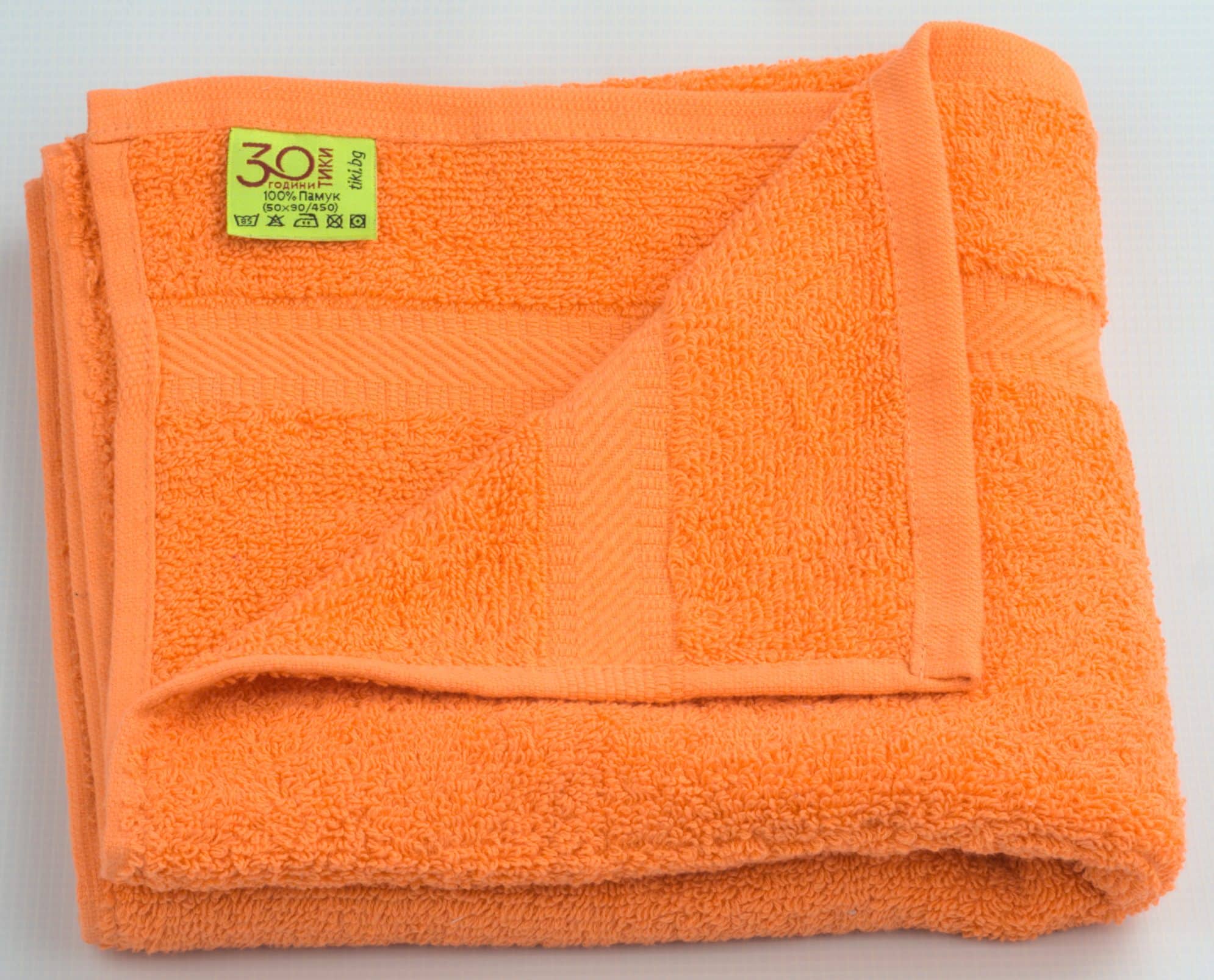 При нас можете да намерите кърпа 50х90 см освен оранжева, също и в много други цветови разновидности. Също така поддържаме в постоянна наличност бели хавлиени кърпи и бели халати за баня.