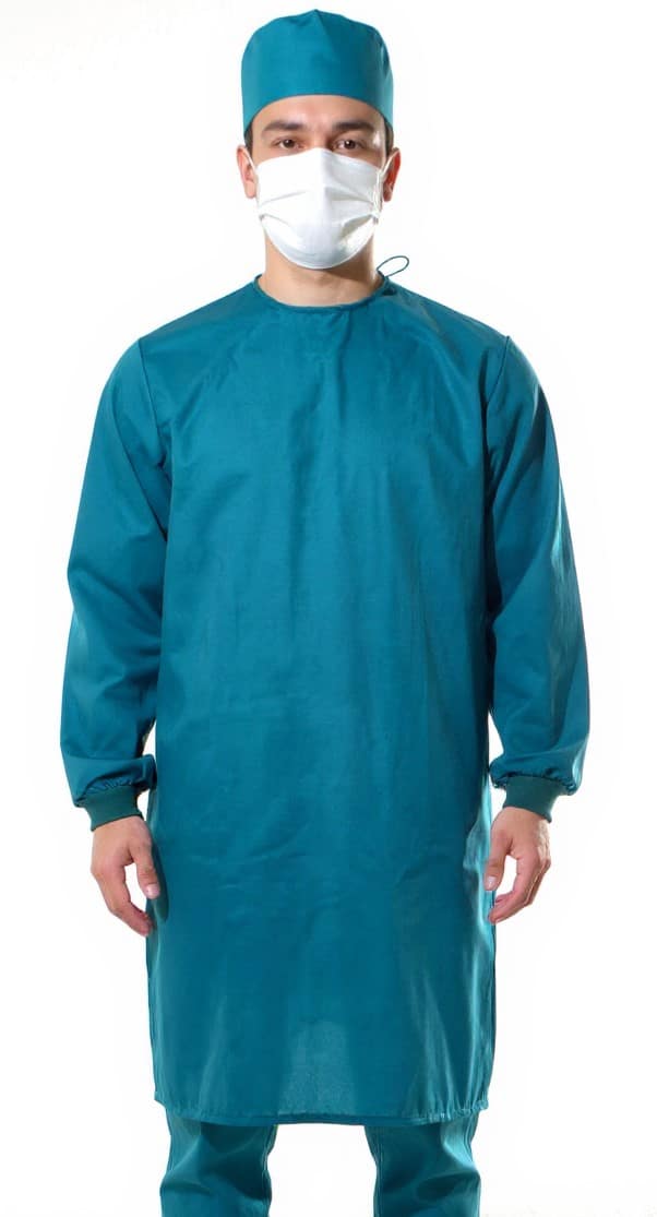Халат за хирурзи в зелен цвят с универсален размер и с връзки за пристягане. Дължината на изделието е 110 см. Този артикул предлага лекота и удобство при ежедневна и продължителна работа. Моделът е предназначен за многократна употреба. Съставът на плата е 35% Памук/ 65% Полиестер и позволява многократно изпиране и лесно гладене. Поръчайте онлайн халат за хирурзи с изгодна доставка по куриер Еконт или Спиди.
