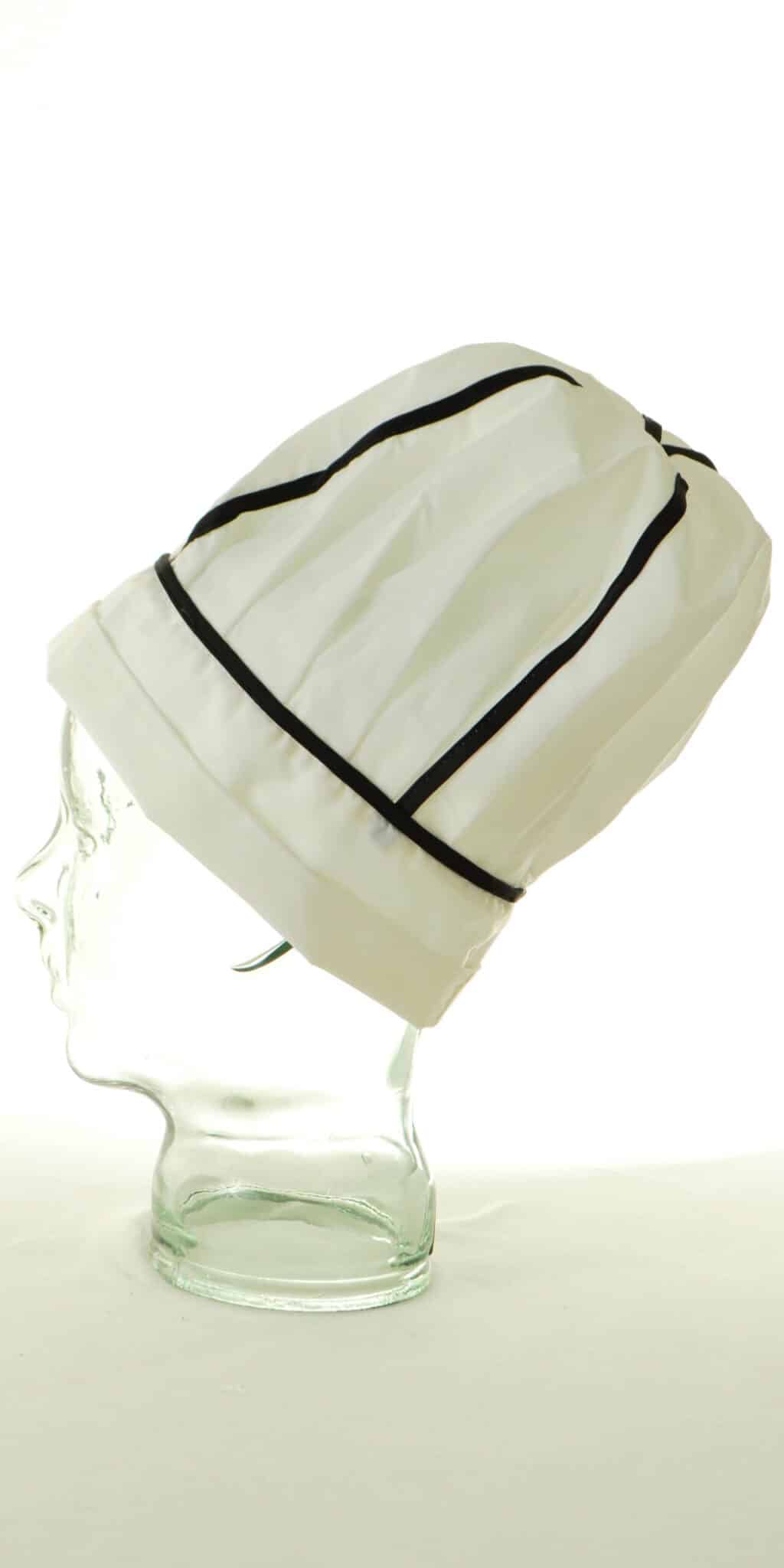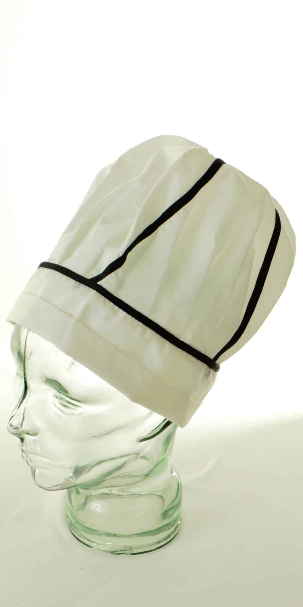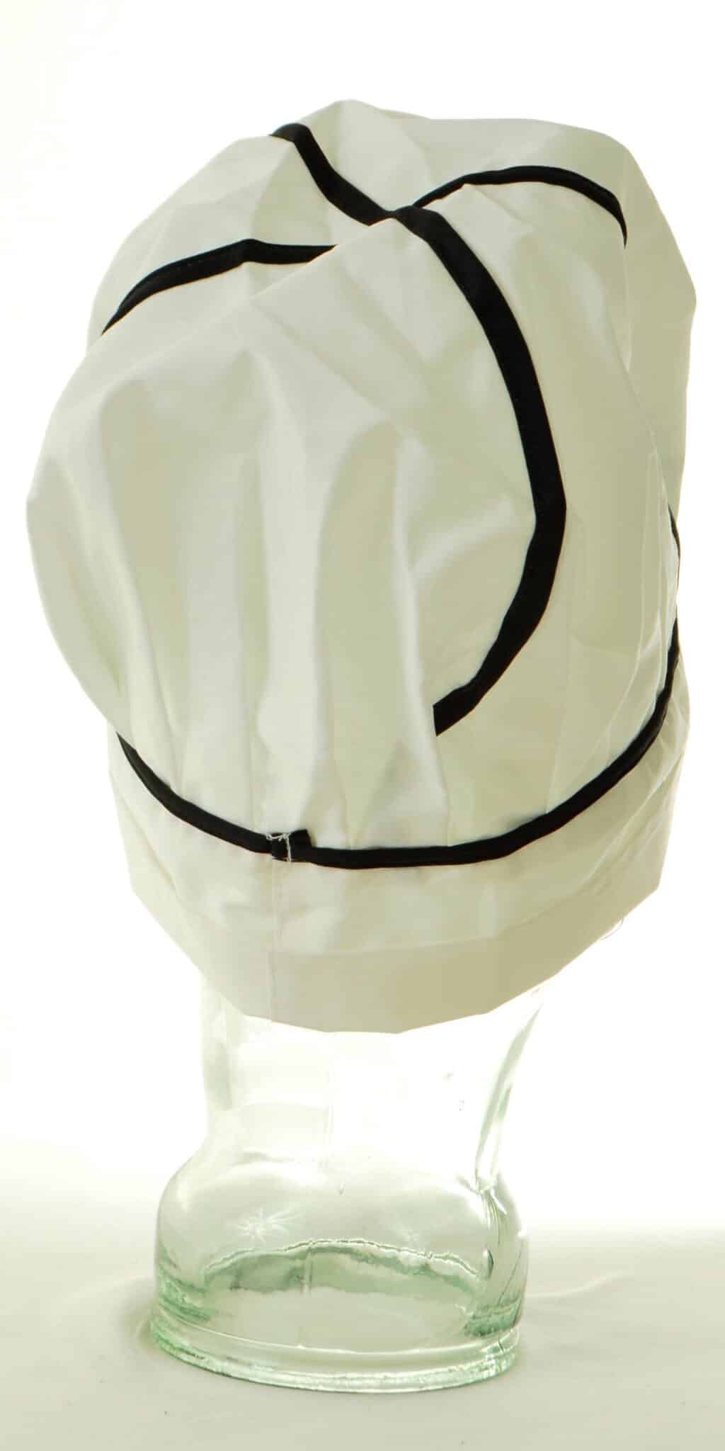 Шапка за готвачи тип „пуканка“ бяла на цвят. Декоративният кант на шапката може да бъде черен, или червен по предпочитание на клиента. Шапката е с универсален размер. Отзад има ластик, който регулира широчината й според необходимото. Този модел е идеално допълнение към бялата ви готварска туника. За завършена униформа комбинирайте с подходящо сабо. Шапка пуканка освен бяла при нас можете да поръчате също в черен и червен цвят с кант по избор.