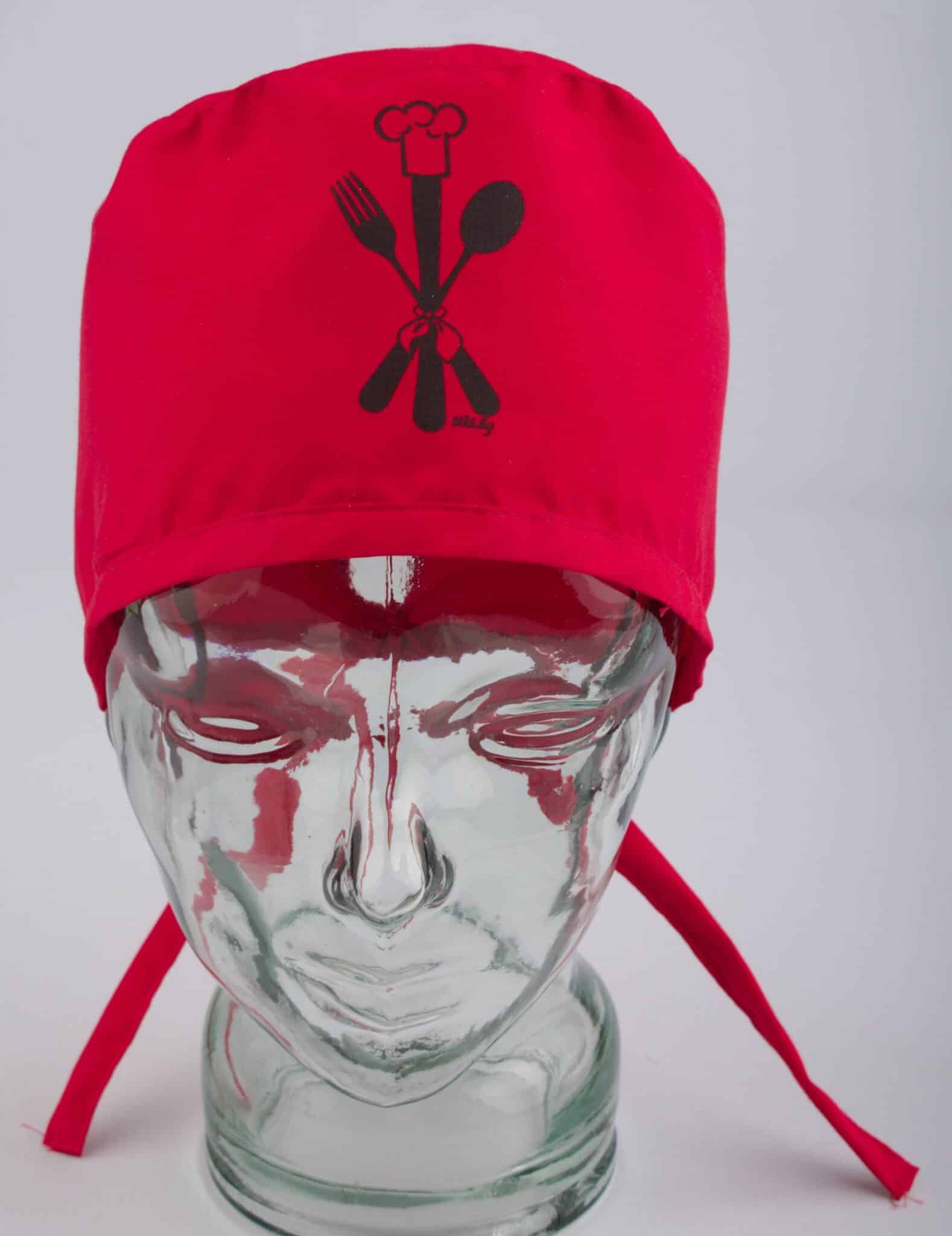 Шапка за готвач червена на цвят с DTF печат в черно. Шапката е с универсален размер и има връзки отзад, с които широчината може да бъде регулирана. Моделът е изработен от лека материя, комбинация от полиестер и памук. Шапка за готвач – червена с печат е лесна е за поддръжка, глади се лесно и изсъхва бързо след пране. Този модел предлагаме също в бял и черен цвят с различен дизайн на печата. Използваме 2 вида дигитален печат:DTF и DTG. Отпечатъка на шапка готвач в черно е отпечатан чрез DTF технология. Чрез нея се постига изключително качество на изображението и устойчивост при пране и надраскване. Разгледайте и другите ни предложения за готварски шапки и за престилки, с които да ги комбинирате.