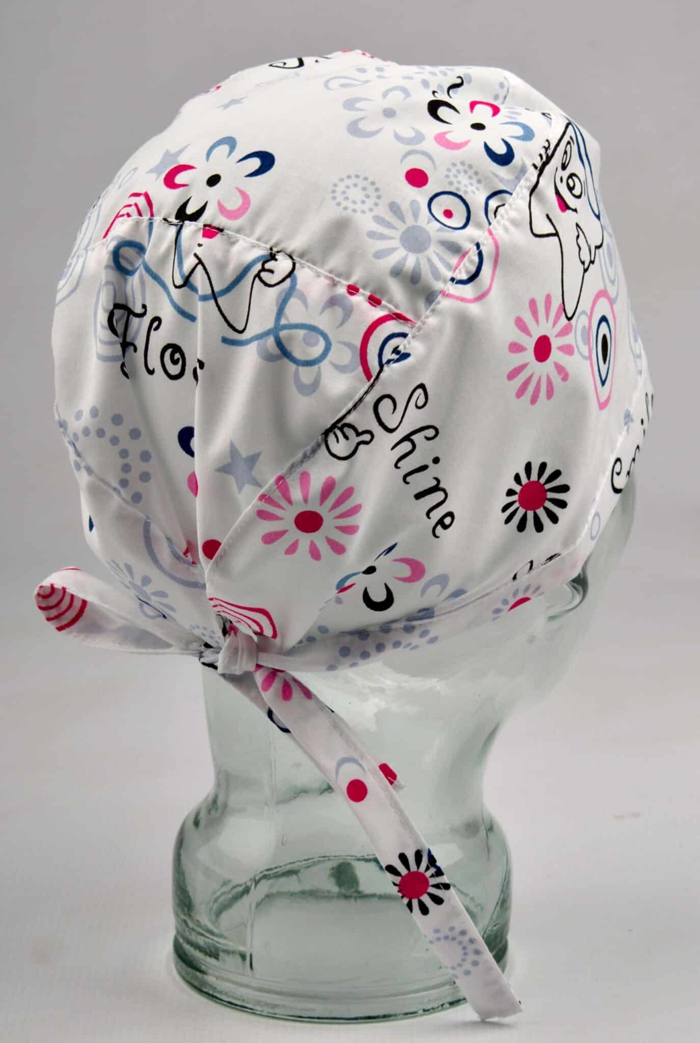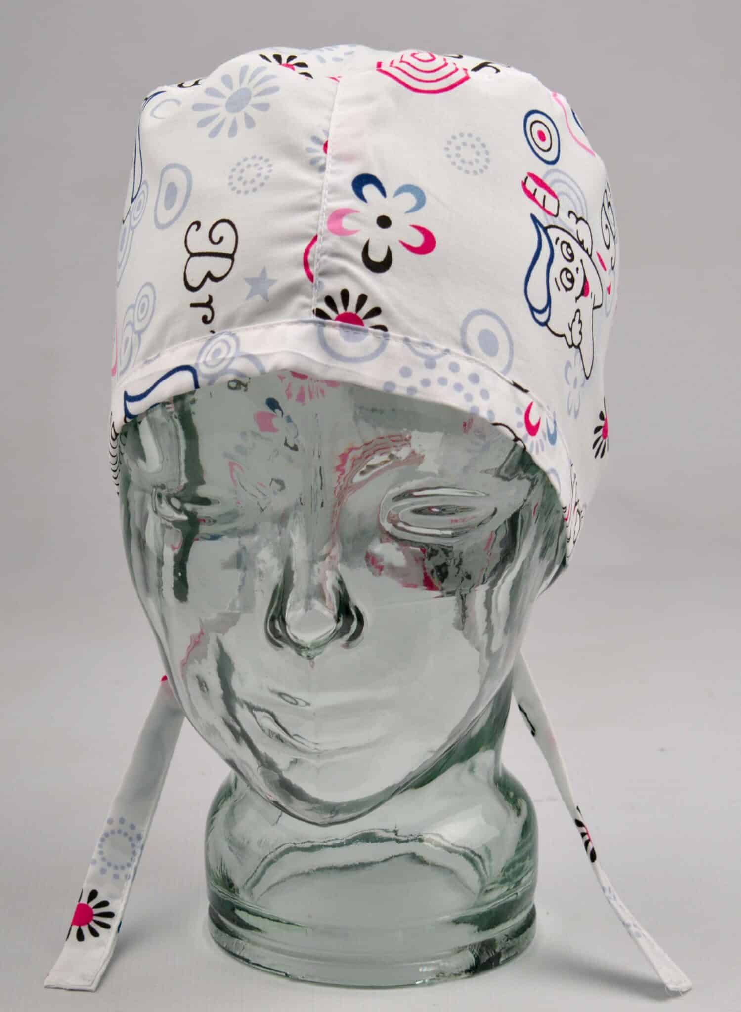Шапка хирургическа бяла на цвят със закачлива цветна щампа зъбче. Широчината на шапката се регулира с връзки отзад. Моделът има много атрактивна и свежа визия. Шапка хирургическа – с щампа зъбче може да бъде комбинирана с медицинска туника с щампа зъбче. Шапката е много подходяща за стоматолози, а и за всеки тип медицинско лице.