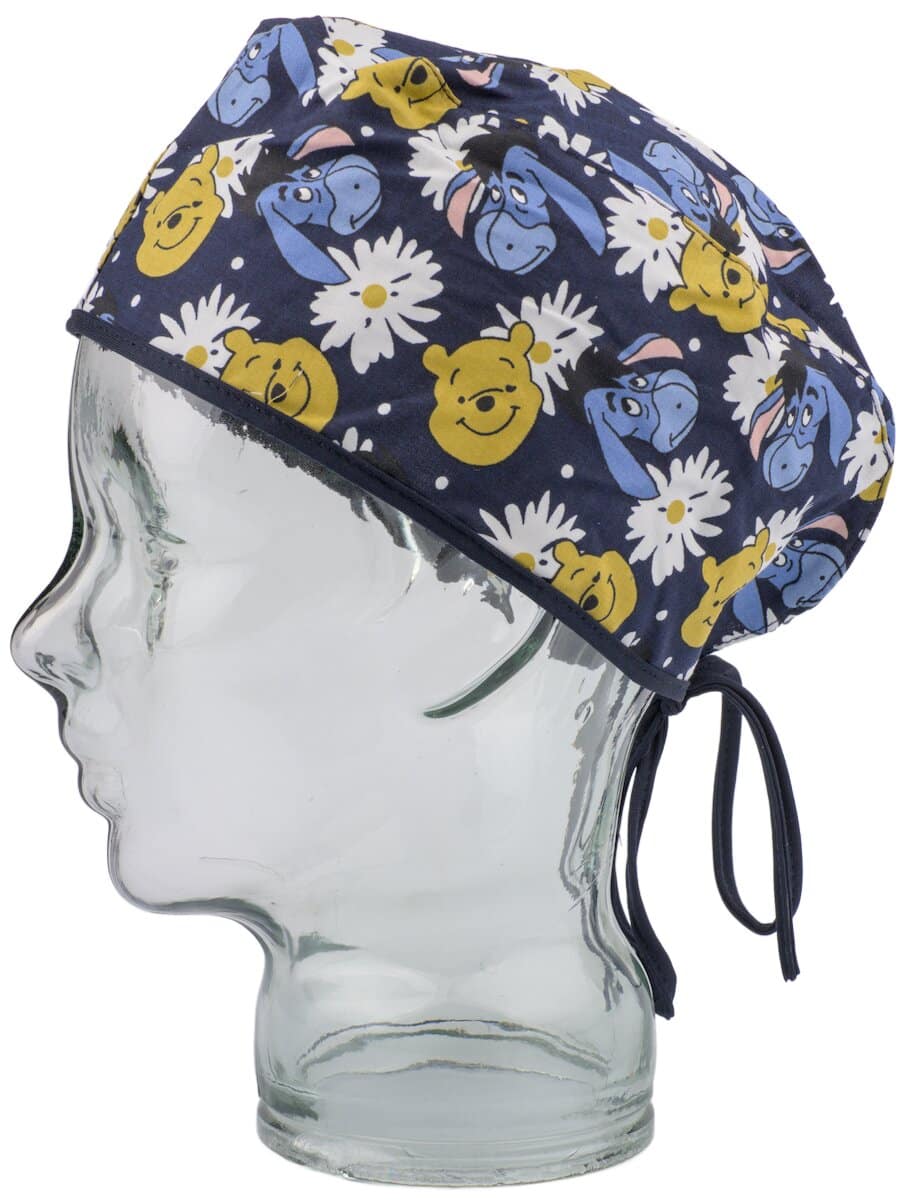 Шапка хирургическа със забавна цветна щампа Мечо Пух и Йори. Изработена е от плат с високо съдържание на памук. Размера на шапката е универсален. Има връзки отзад за регулиране на широчината. Шапка с щампа Мечо Пух и Йори е еднакво подходяща както за жени, така и за мъже. Модела се съчетава идеално с медицинска туника Мечо Пух. Разгледайте и другите ни предложения за медицински шапки. За завършена медицинска униформа съчетайте с медицински панталон и медицинско сабо.