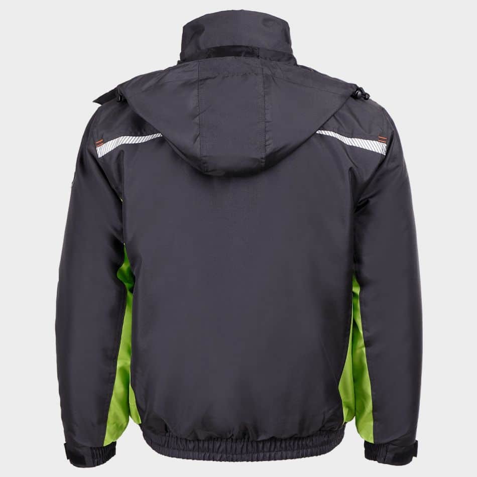 Яке ватирано – Призма е проектирано за студено време и интензивна работа на открито. Моделът комбинира топлина, защита и висока видимост – всичко, от което се нуждае един професионалист през зимата. Изработено е от 300D полиестер Oxford с PU покритие, устойчив на влага и износване. Подплатата задържа топлината, без да ограничава движението. Моделът включва качулка с велкро закопчаване, която предпазва главата и врата при лошо време. Закопчаването е с цип и допълнителен пластрон с тик-так копчета, които не пропускат вятър. Работното яке Призма разполага с два странични джоба и един нагръден джоб с цип – за удобно съхранение на принадлежности. Маншетите са ластични и регулируеми с велкро, а долната част е с частичен ластик за по-добро прилягане. Светлоотразителните елементи подобряват забележимостта при ограничена видимост. Продуктът отговаря на EN ISO 13688 – стандарт за професионално защитно облекло.