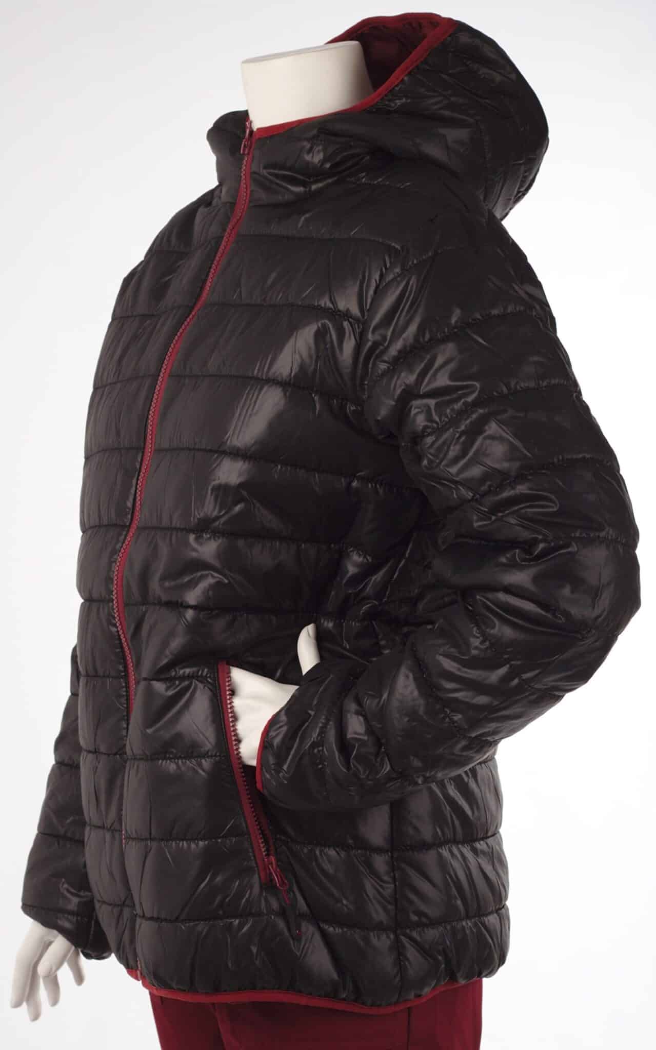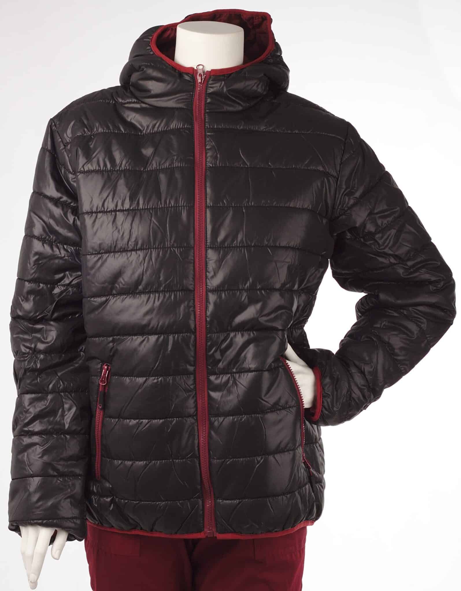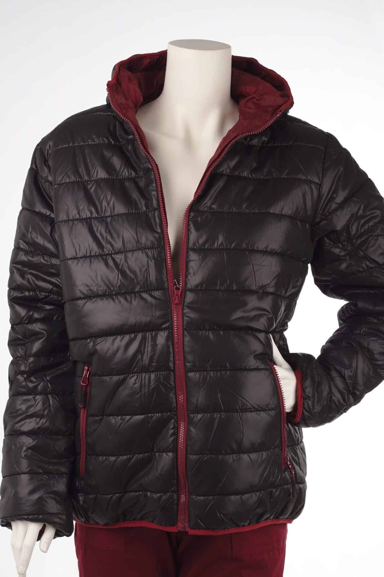 Ватирано яке, дамско, от шушляк в черно с цип в цвят бордо. Якето е изключитлно леко и удобно. Лесно е за поддръжка, изсъхва много бързо след пране и не заема много място в гардероба. Подходящо е както за разходка навън в свободното ви време, така и за работа на открито в хладните сезони. Този модел яке се предлага също изцяло в цвят бордо, в тъмносин цвят с електриково зелени ципове, както и в черен цвят с розови ципове.