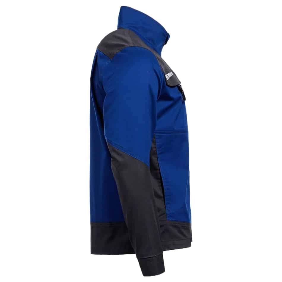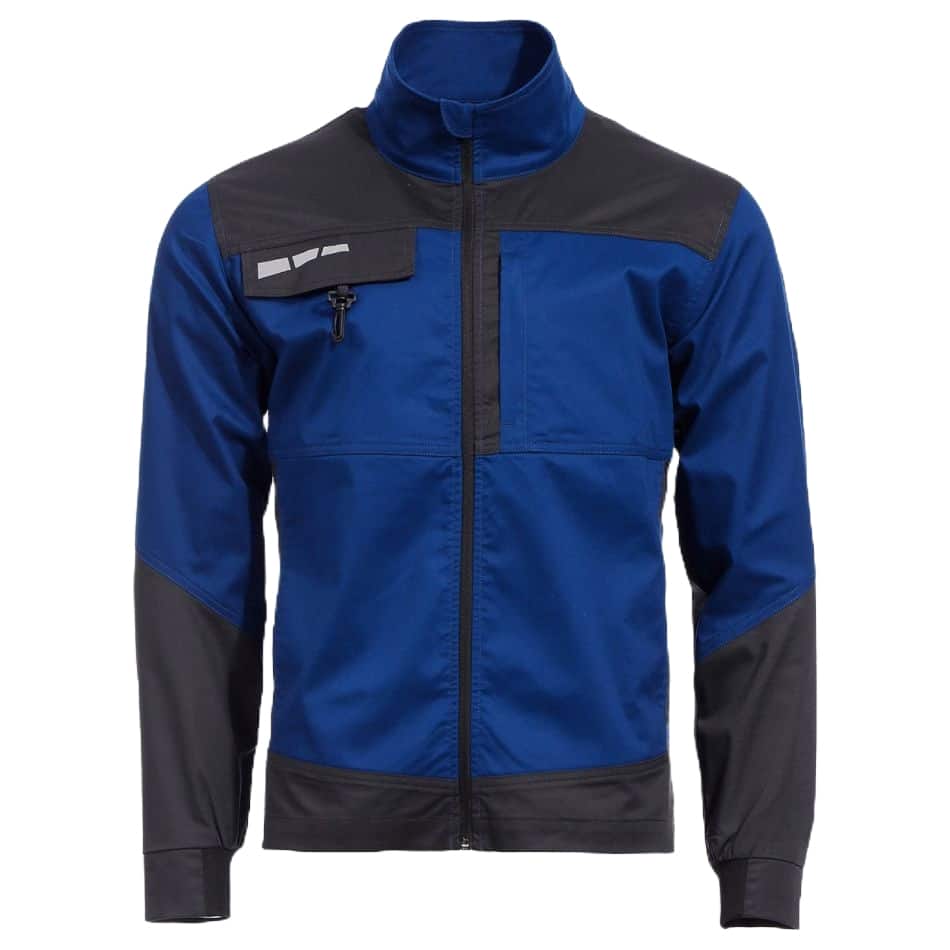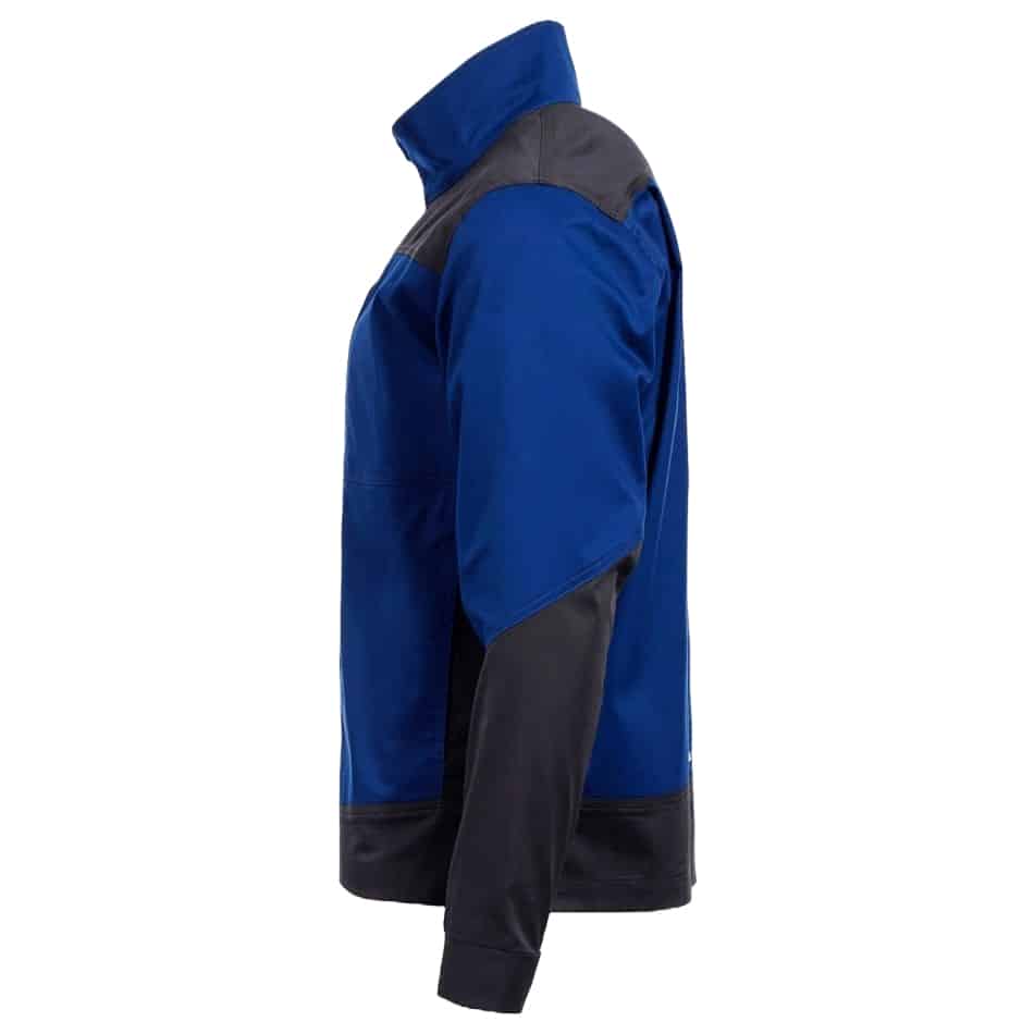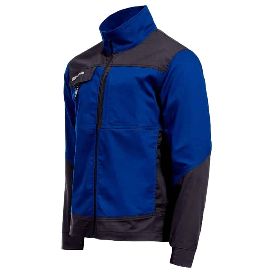 Работно еластично яке EOS – кралско синьо на цвят. Закопчаването с цип, завършващ с удобен предпазител за брадичката в горната част. Моделът е с два джоба на гърдите. Десен джоб с капак с велкро закопчаване и халка за ключове или бадж. Ляв джоб – вертикален, със скрито закопчаване с цип. Яке еластично EOS – кралско синьо има допълнителни два странични джоба с цип и еластични маншети на ръкавите за допълнително удобство по време на работа.